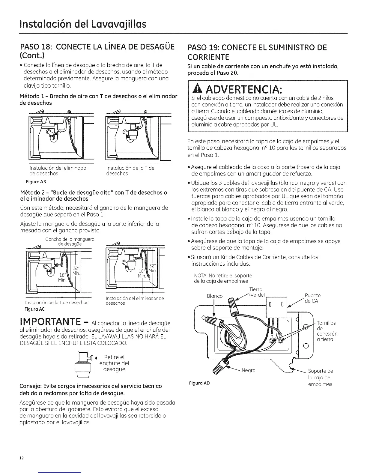 al eliminador de desechos, aseg0rese de que el enchufe del