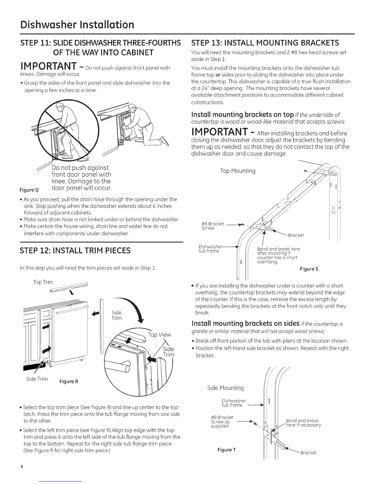 frame top or sides prior to sliding the dishwasher into place under
