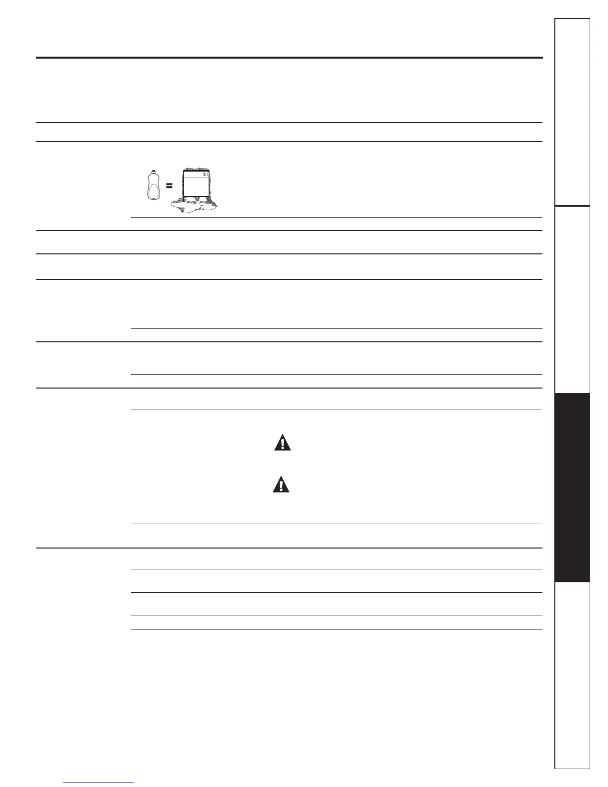 Suds in the tub Correct detergent • Use only automatic dishwasher detergents to avoid sudsing.