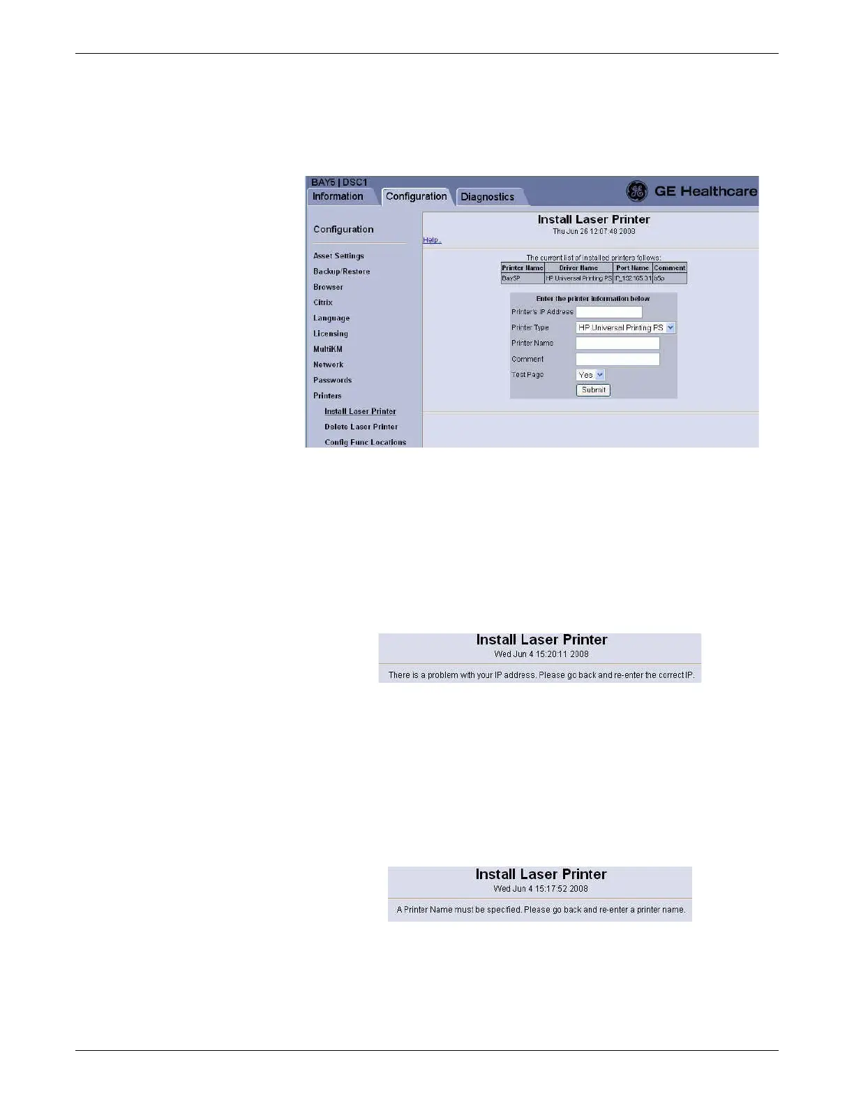 3. With the laser printer physically connected to the CARESCAPE Network IX