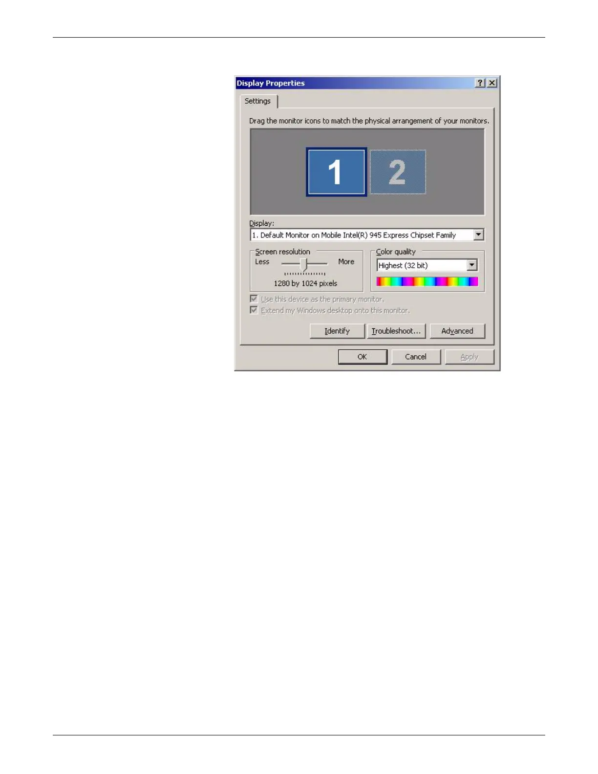 g. Note the Screen resolution setting for display 2.