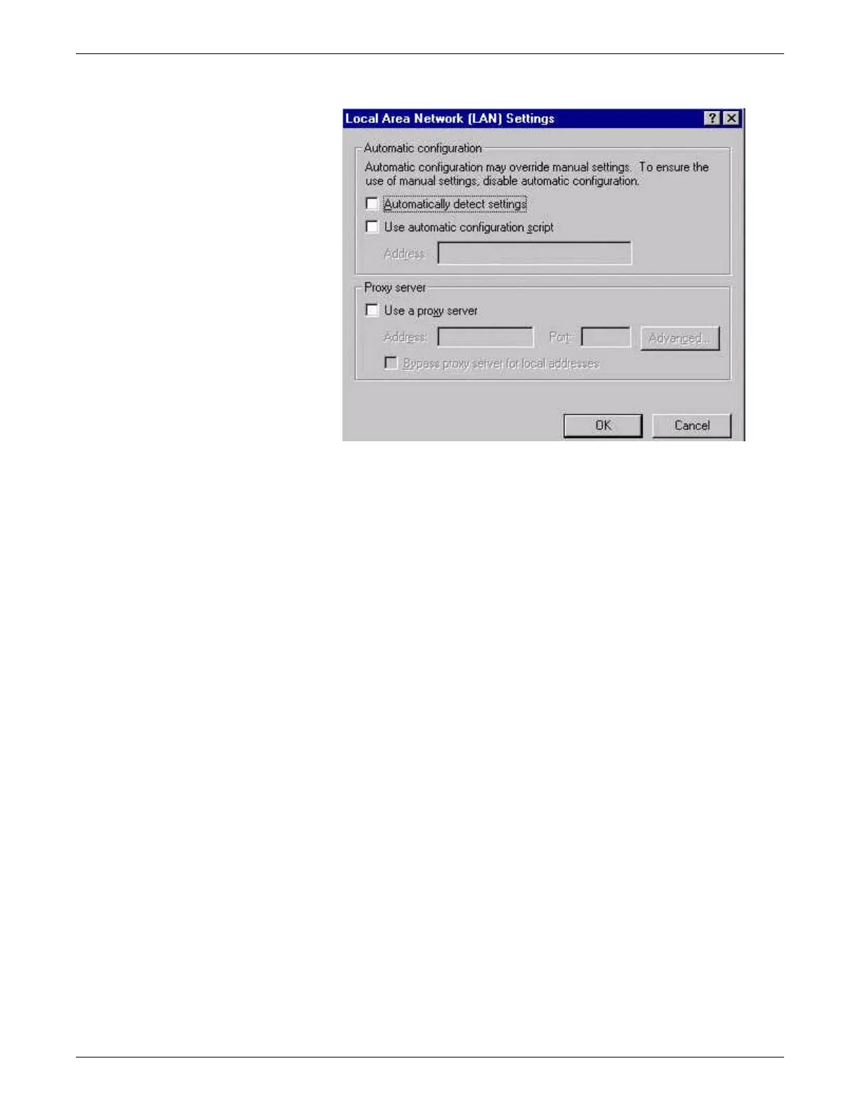 8. Under Automatic Configuration, uncheck Automatically detect settings and