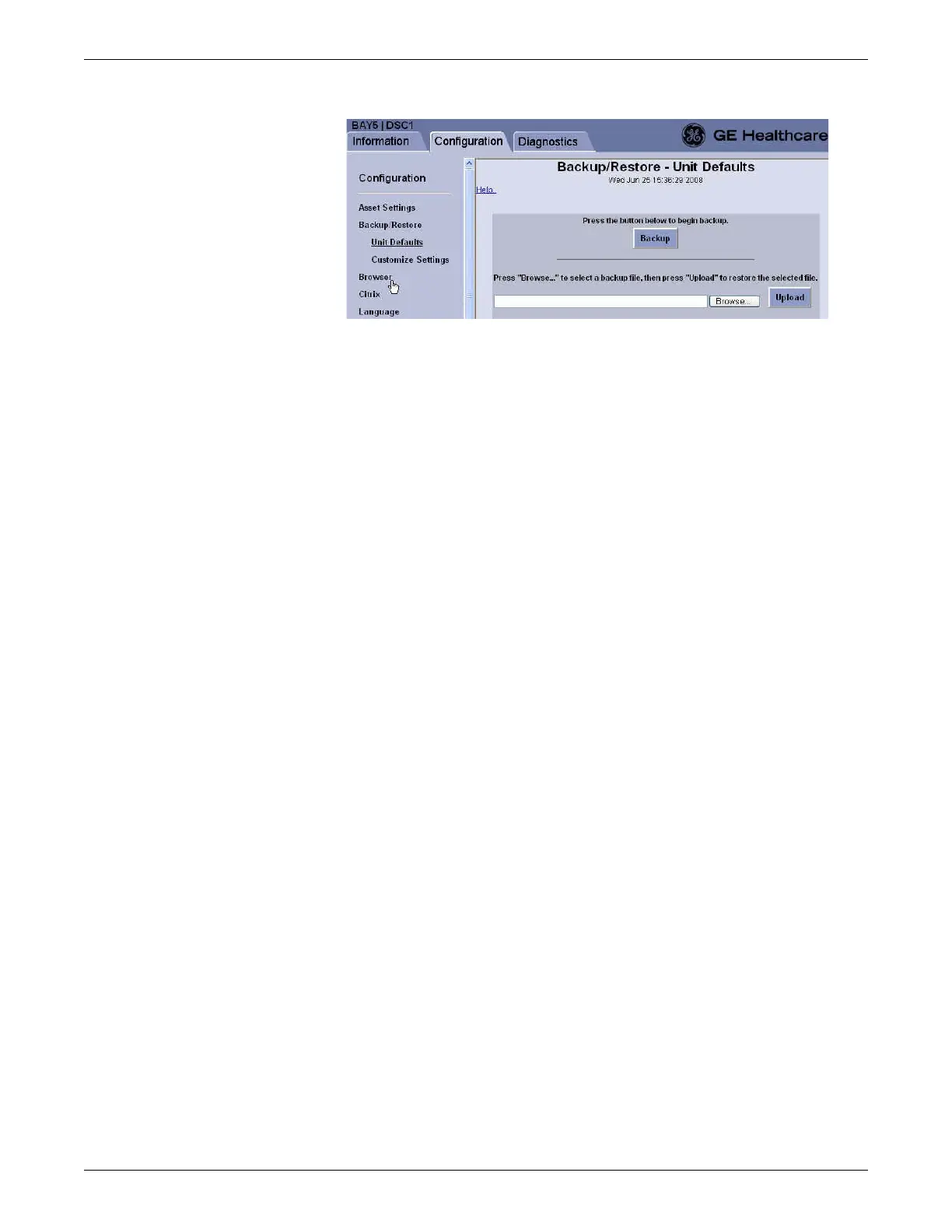 6. Click Browse to select a backup file from the service PC/remote computer.