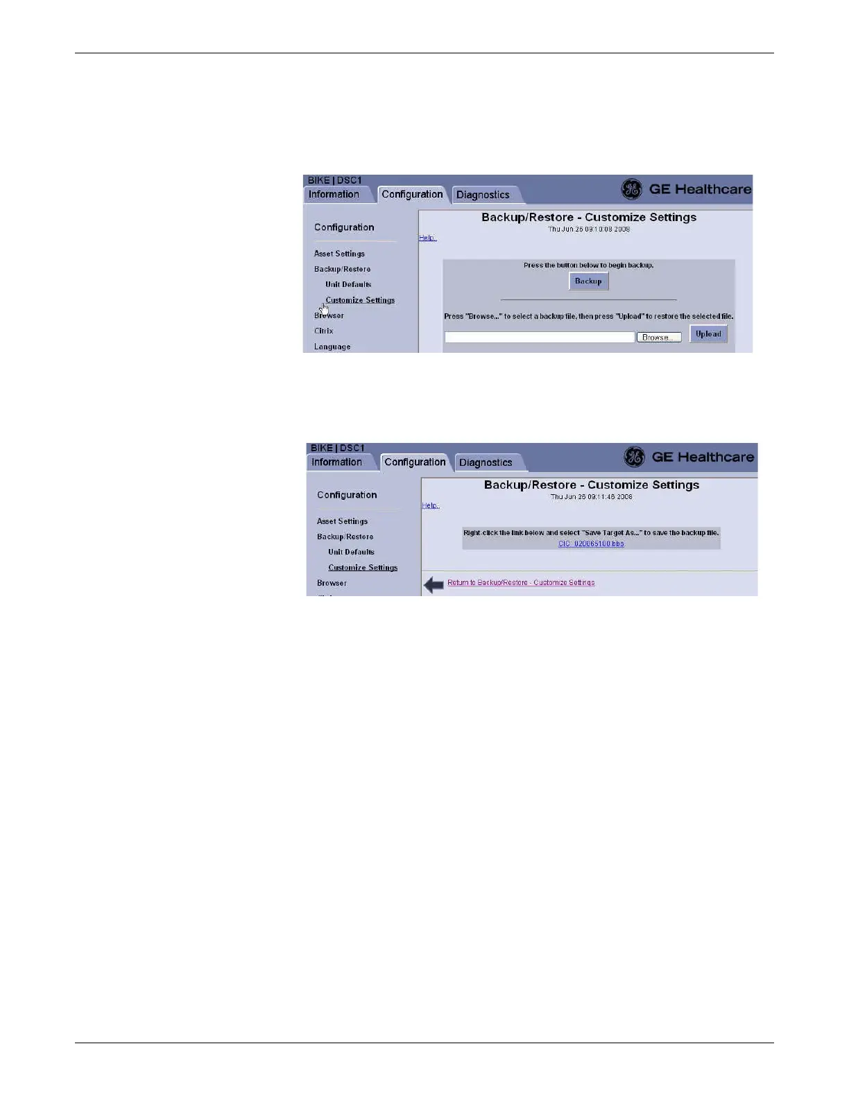2. Click Configuration > Backup/Restore > Customize Settings.