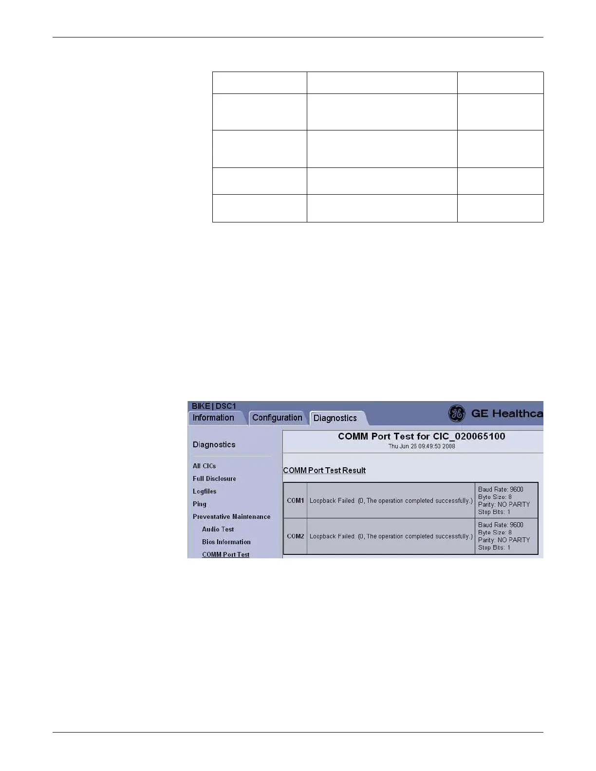 4. Click Diagnostics > Preventative Maintenance > COMM Port Test.
