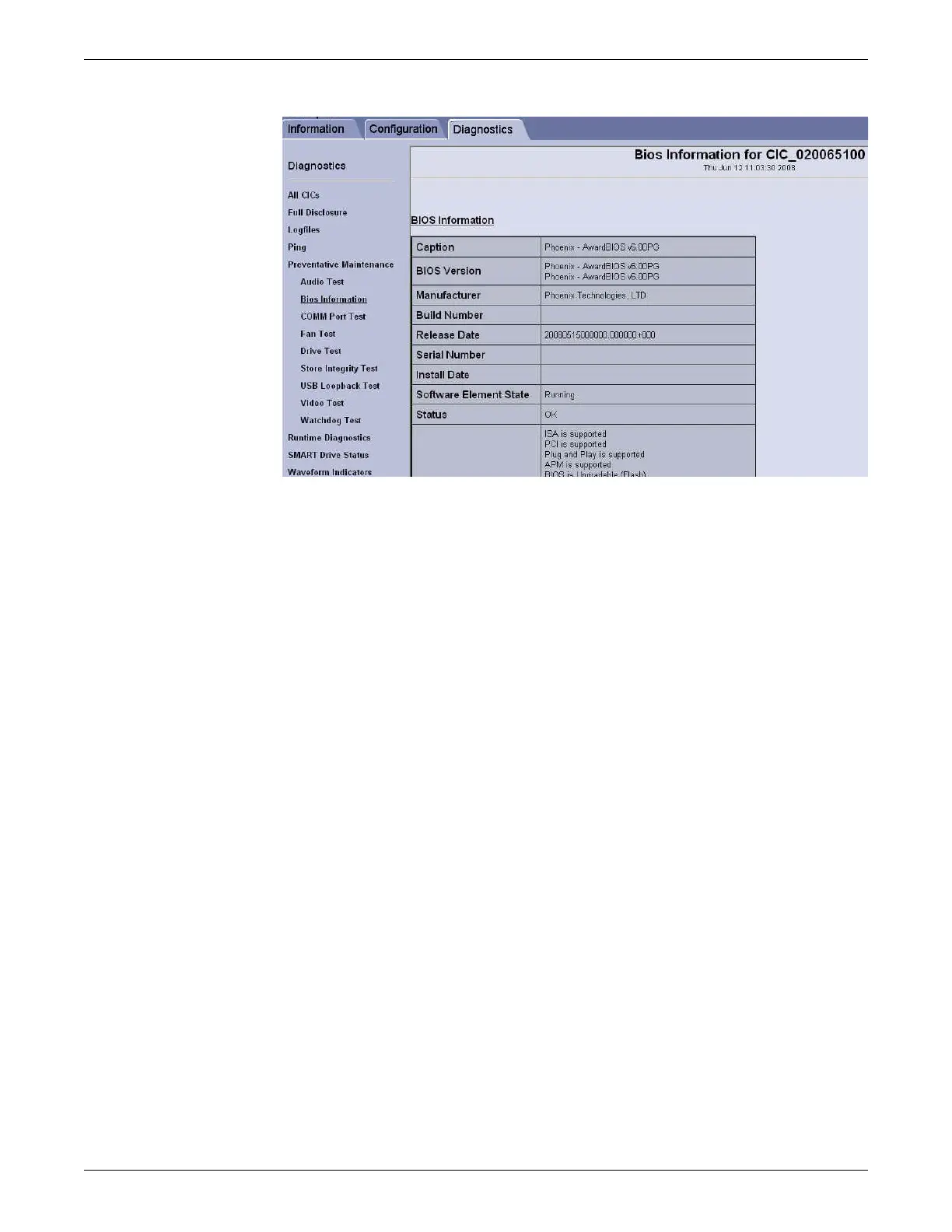 3. Verify that the following information displays in the BIOS Version field on the