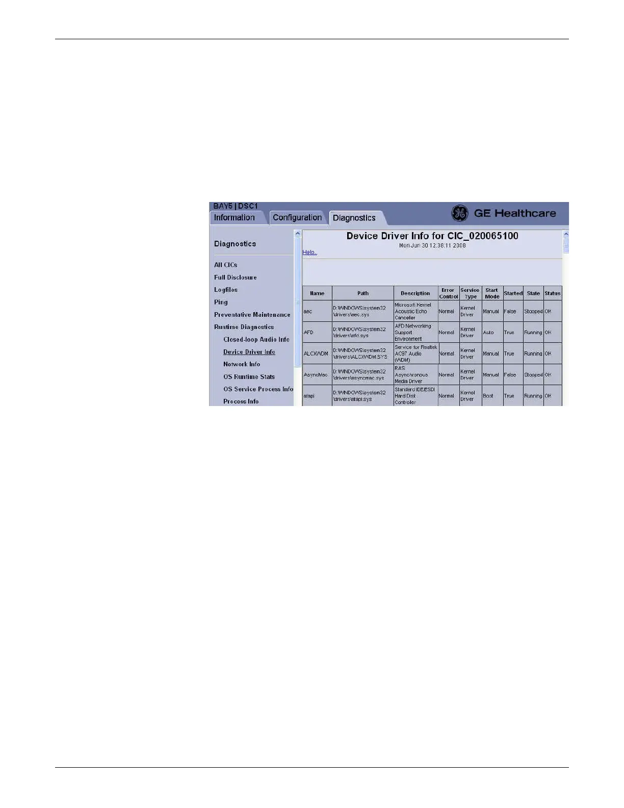 2. Click Diagnostics > Runtime Diagnostics > Device Driver Info.