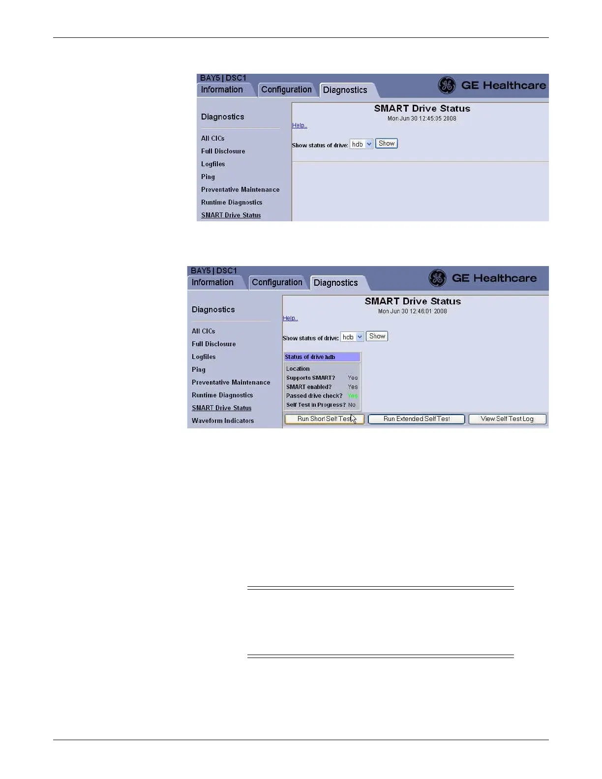 4. Click on either the Run Short Self Test or the Run Extended Self Test button,