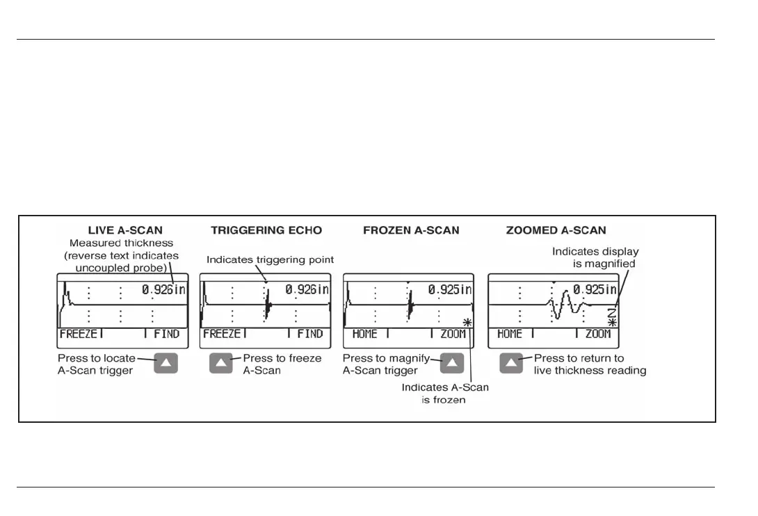 display while FREEZE captures the live A-Scan. After