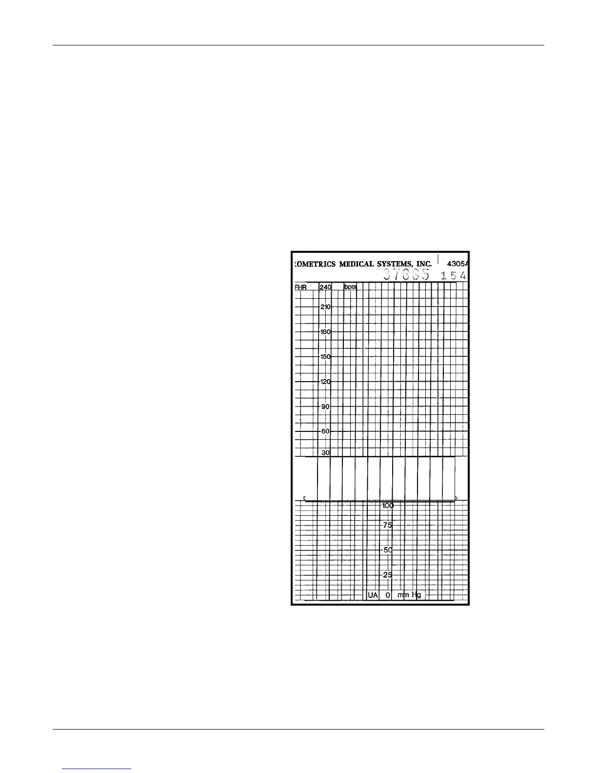 horizontal lines at: 0 mmHg, 30 bpm, and 240 bpm. The recorder prints a