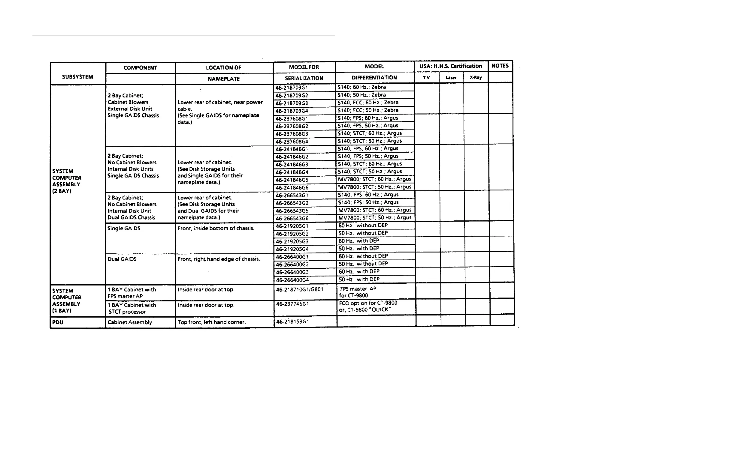 1 Gantry complete assembly serialized and H.H.S. certified after August, 1985 CODES FOR TYPE OF X-RAY CERTIFIED COMPONENT