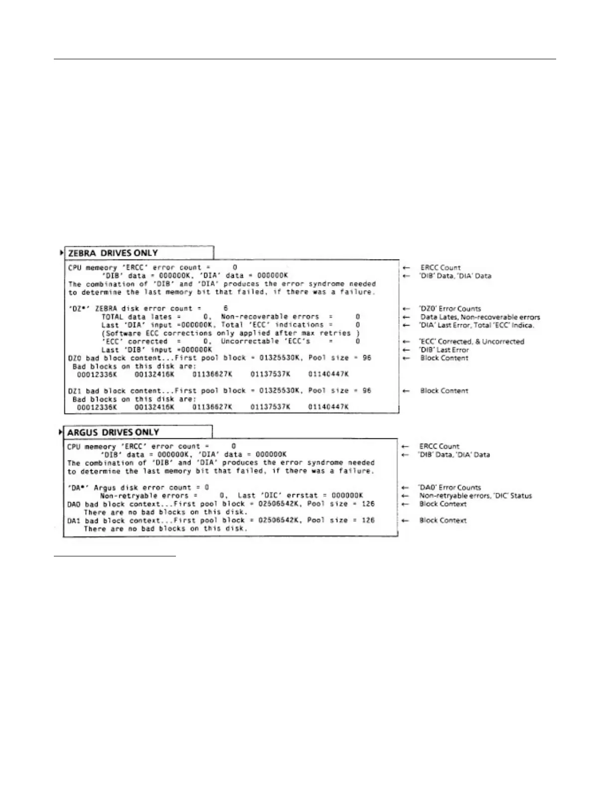 ’DZ0’ ERROR COUNT= 6, (DZ=Zebra, DA=Argus, 0 or 1=Drive Unit Number)