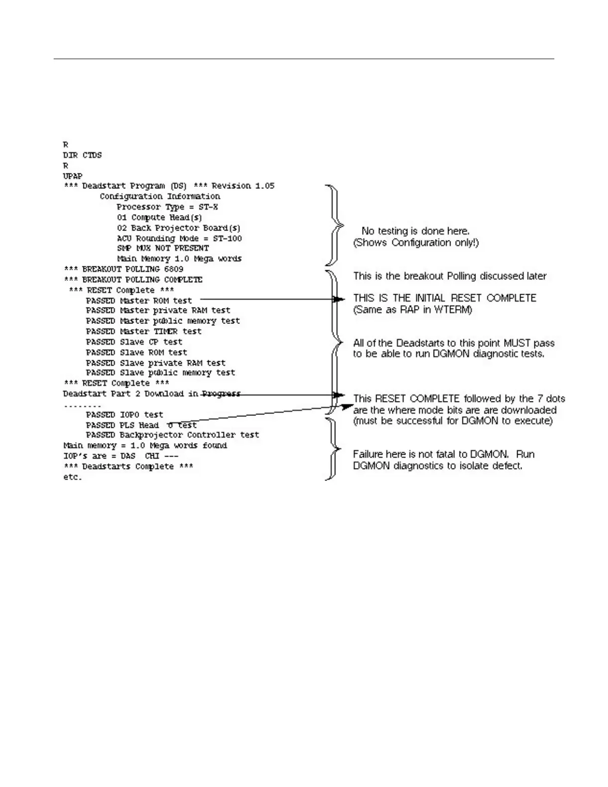 the screens that are displayed during UPAP and display the DeadStarts results. The remainder of the screens