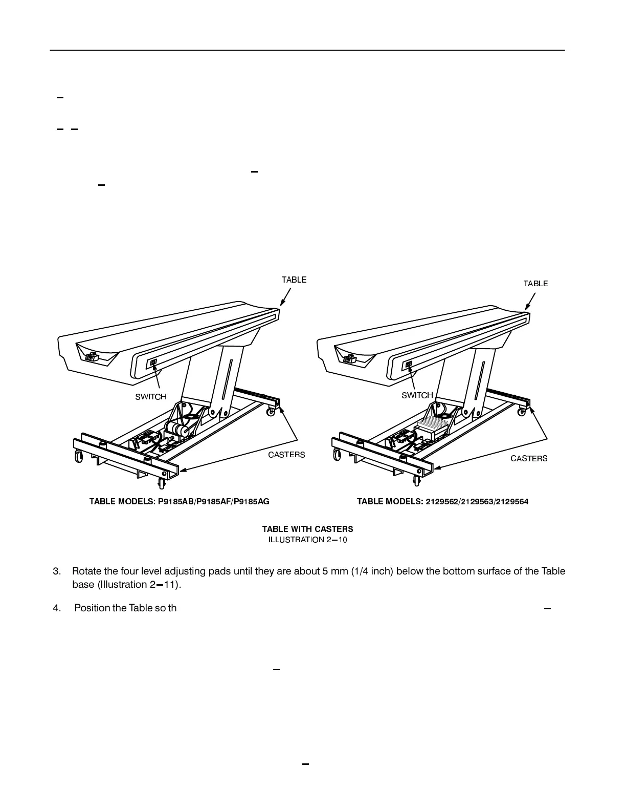 5RWDWH WKH IRXU OHYHO DGMXVWLQJ SDGV XQWLO WKH\ DUH DERXW PP LQFK EHORZ WKH ERWWRP VXUIDFH RI WKH 7DEOH