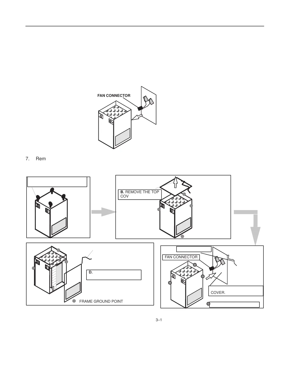 6. Remove the rear cover, after removing the fan connector (brown connector) and the ground cable.