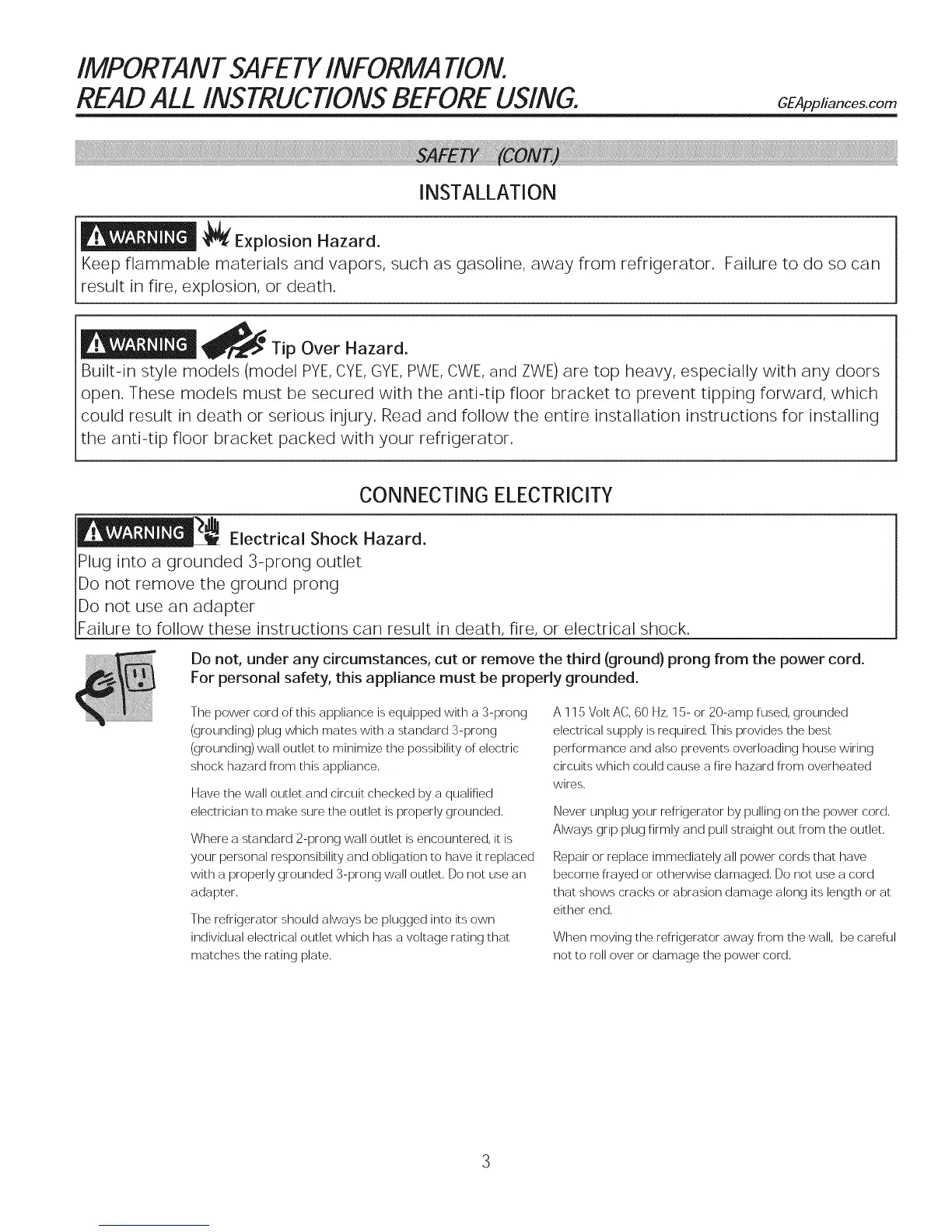The power cord of this appliance is equipped with a 3-prong
