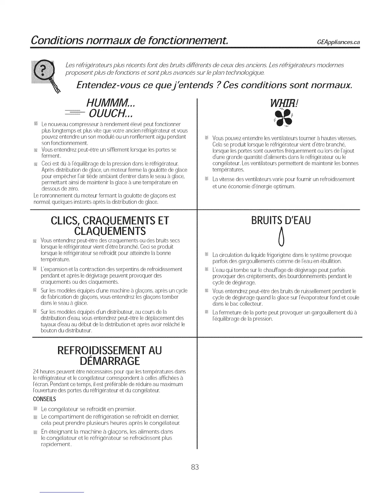 Conditions normaux de fonctionnement. GEAppliances.ca