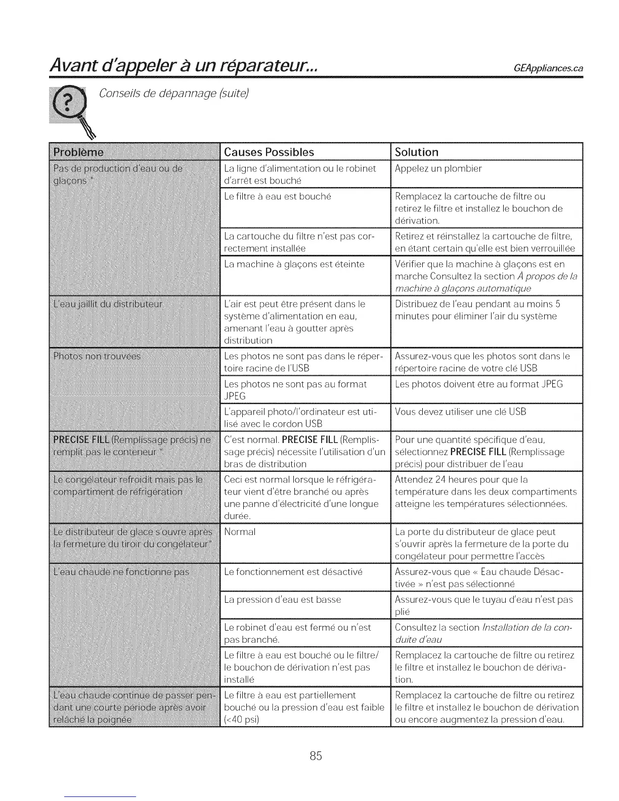 Consei/s de depannage (suite)