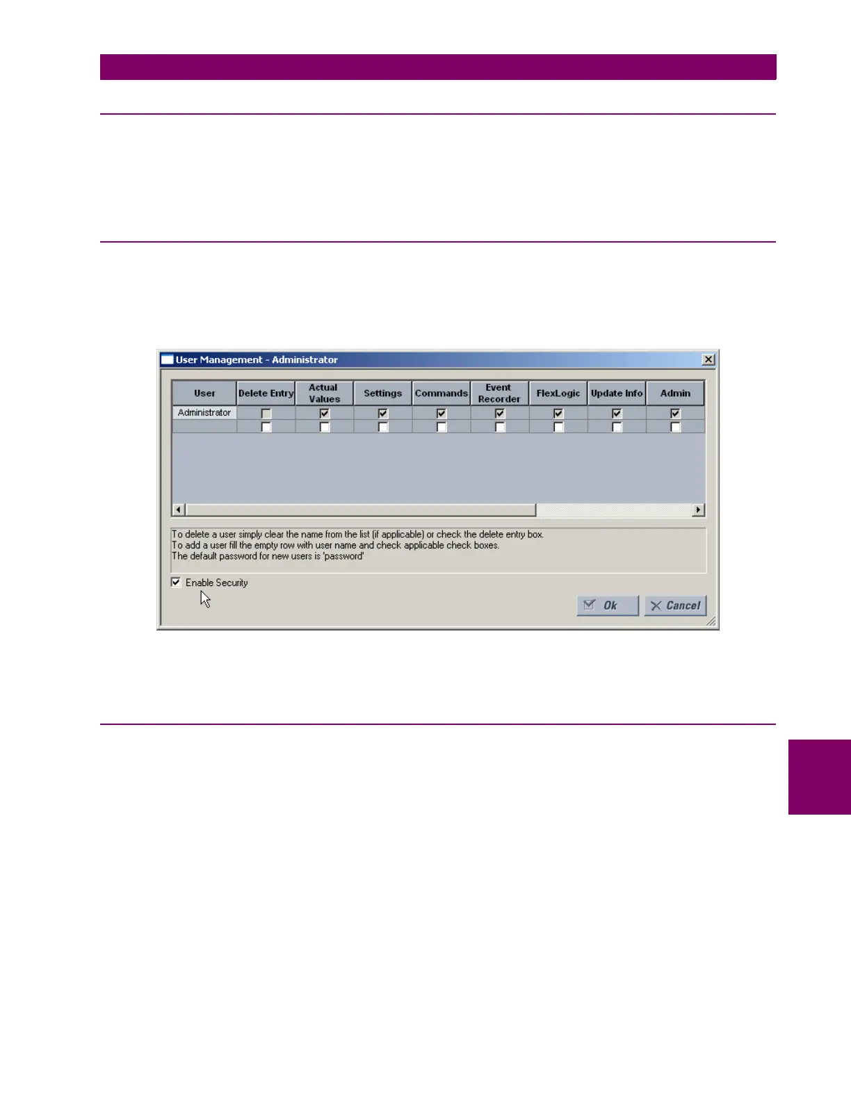 system is disabled by default to allow the administrator direct access to the EnerVista software after installation. It is recom-