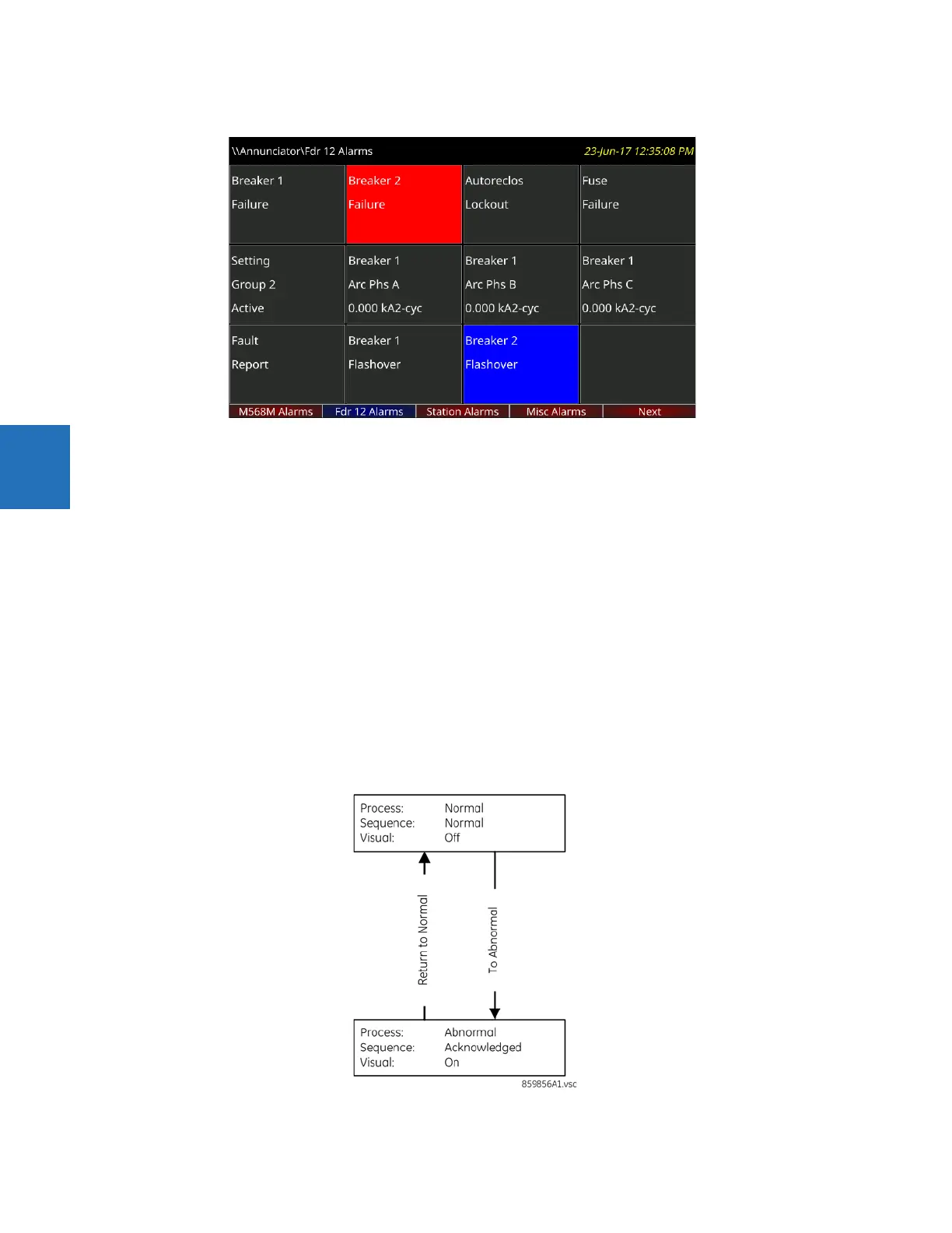 Figure 4-40: Annunciator alarm sequence in Self Reset mode