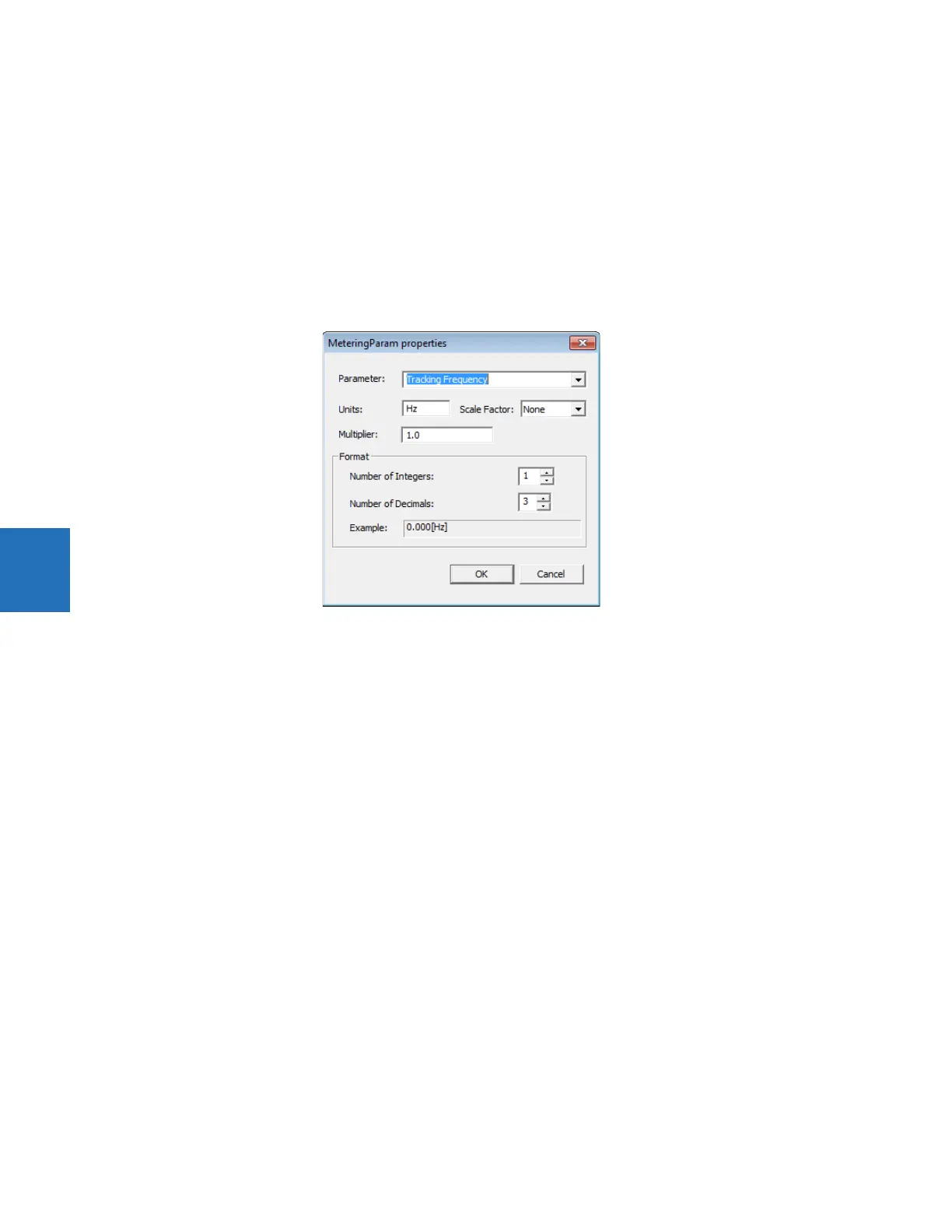 This setting selects a FlexAnalog parameter that specifies the metered value to display in the metering window. A