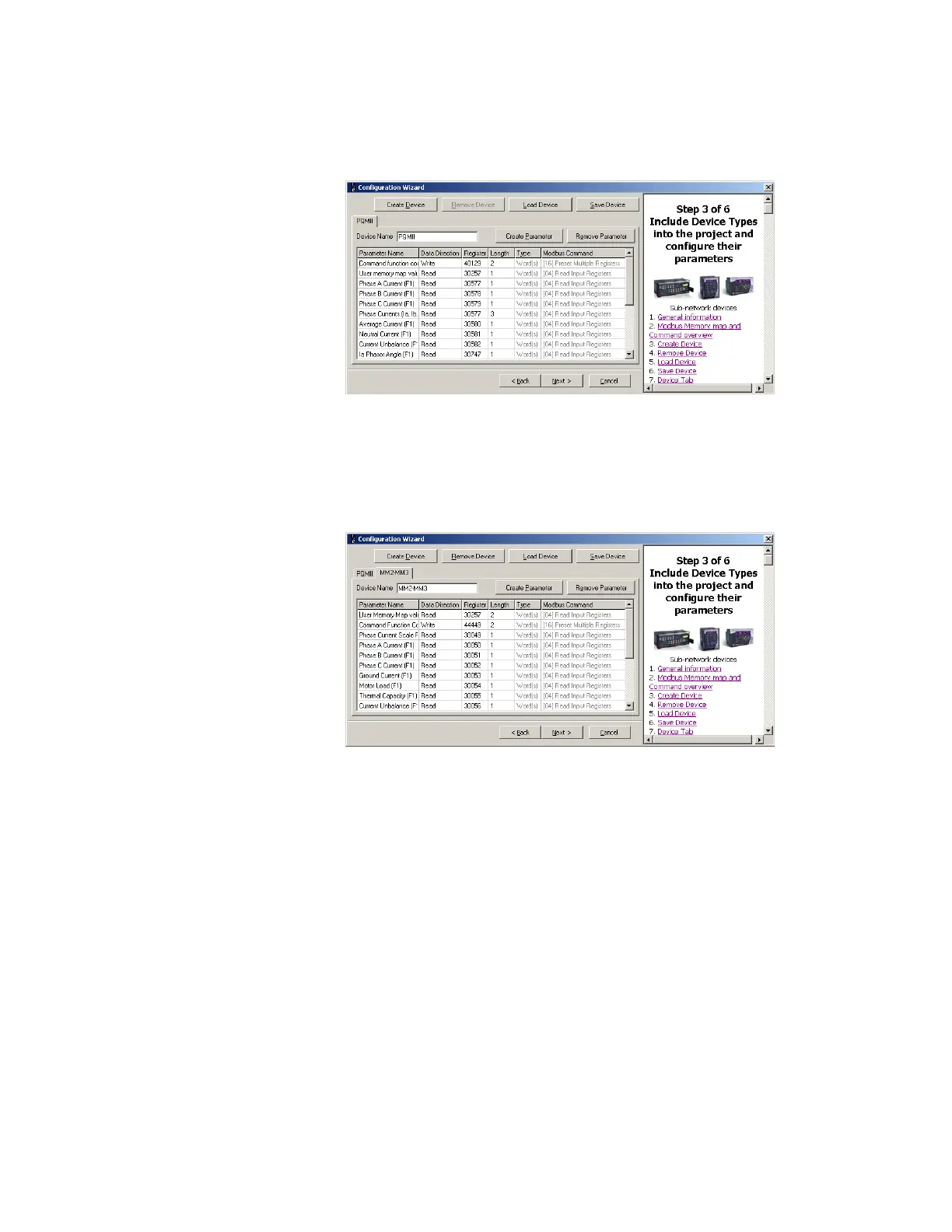 the MM2. The Modbus User Map values are already present in the configuration file; as