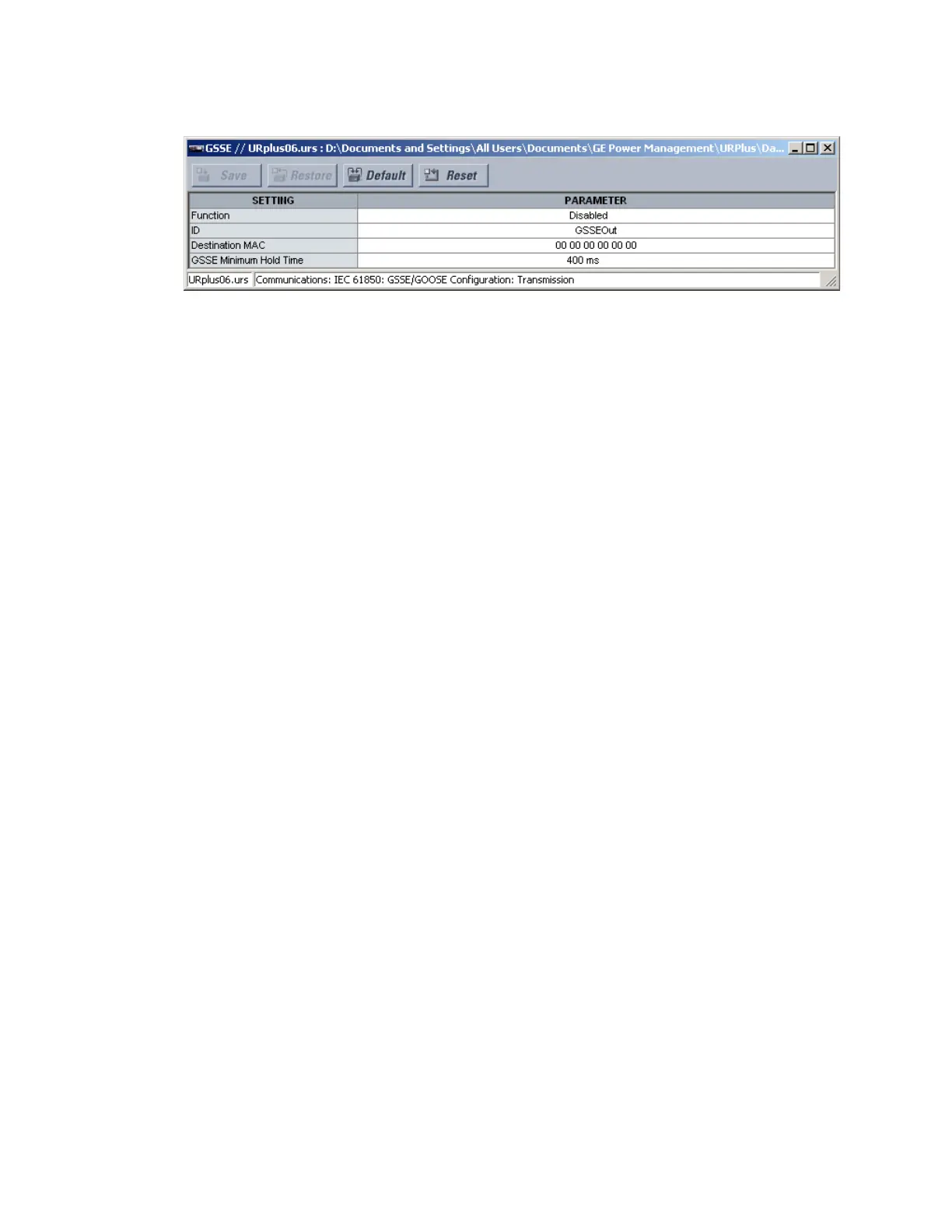 Select the Settings > Communications > IEC 61850 > GSSE/GOOSE Configuration >