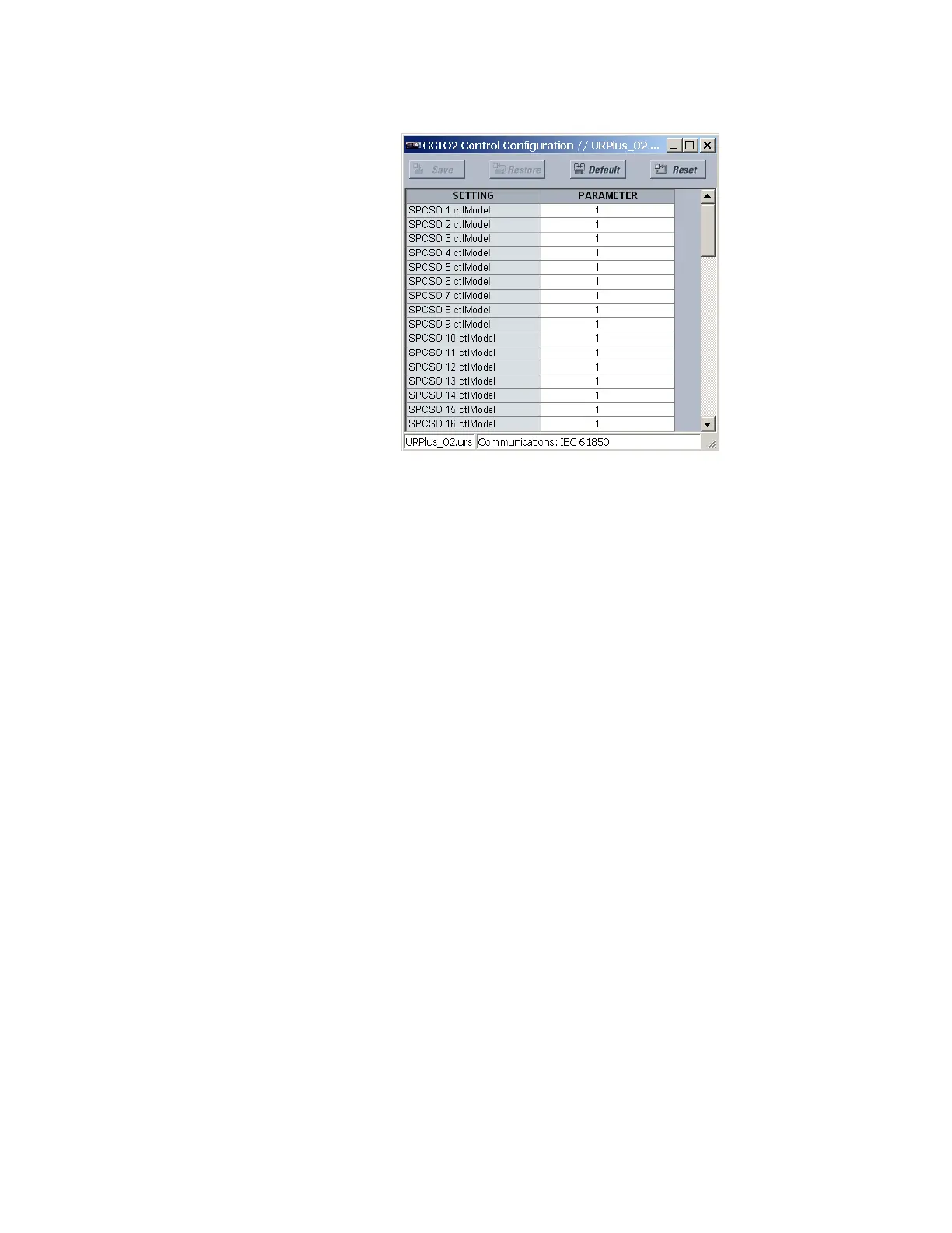 The following setting is available for each of the 64 GGIO2 control points. Each control