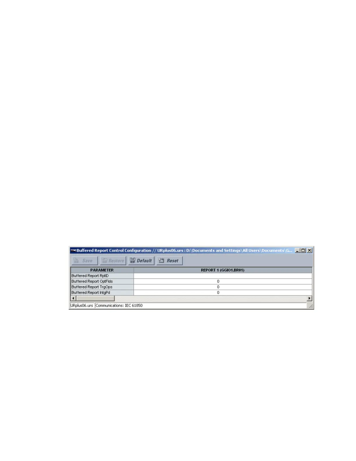 Select the Settings > Communications > IEC 61850 > Buffered Report Control