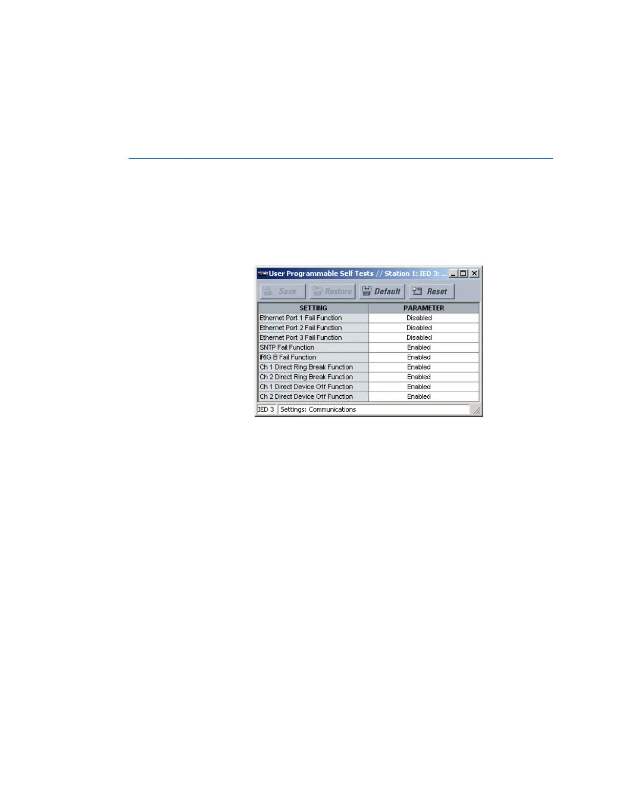 Select the Settings > Communications > User-Programmable Self-Tests menu to open