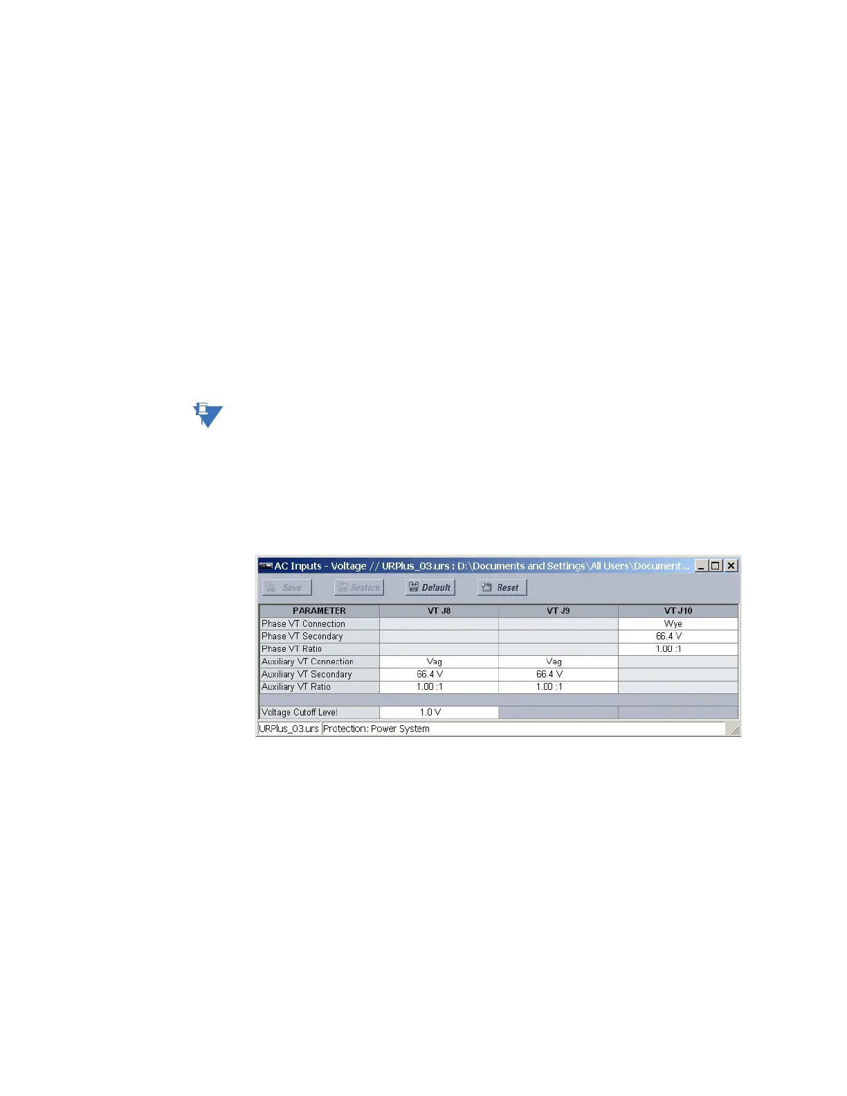 Select the Settings > Protection > Power System > AC Inputs - Voltage menu to open the