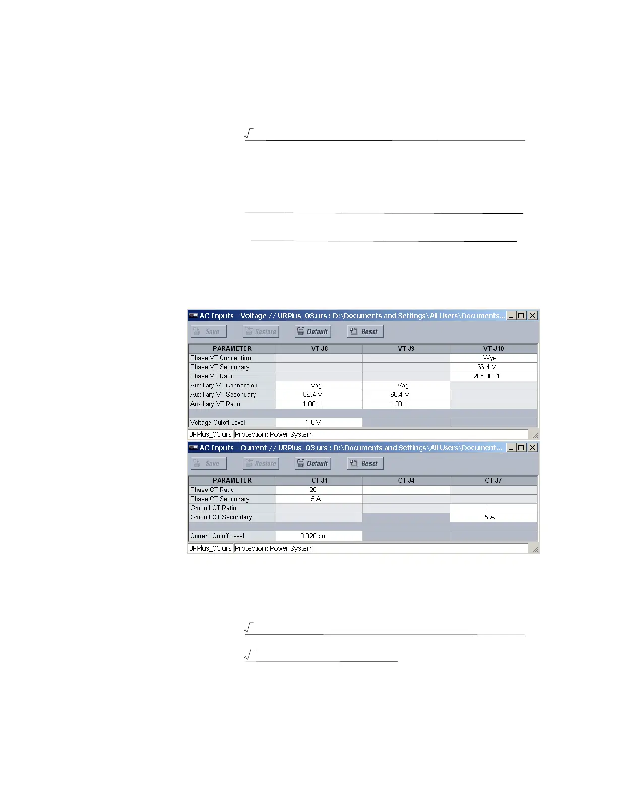 where VT primary = VT secondary × VT ratio and CT primary = CT secondary × CT ratio.