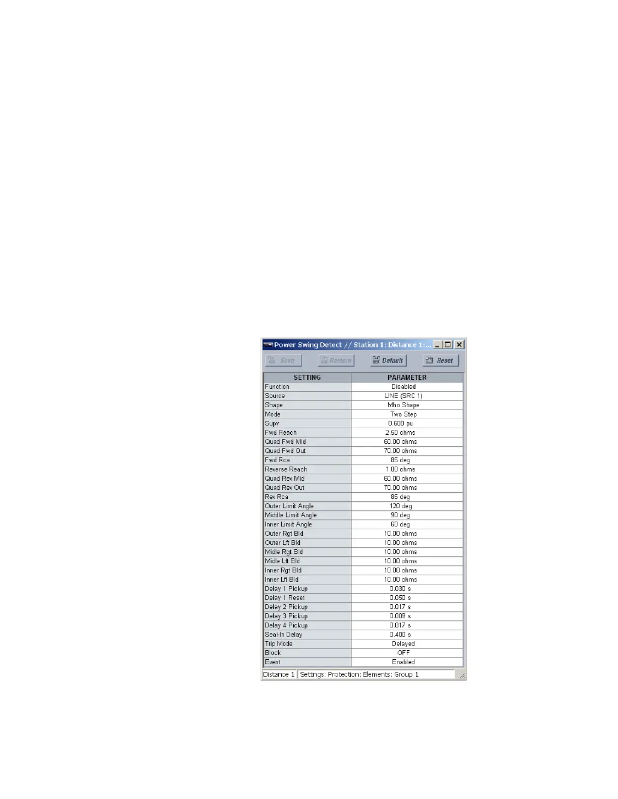 Select the Settings > Protection > Elements > Group 1 > Power Swing Detect menu to