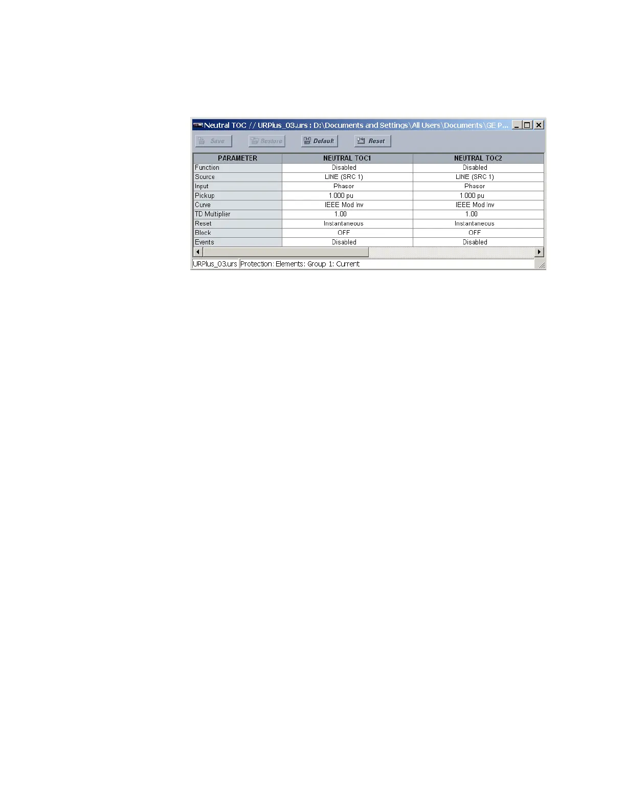 Select the Settings > Protection > Elements > Group 1 > Current > Neutral TOC menu to