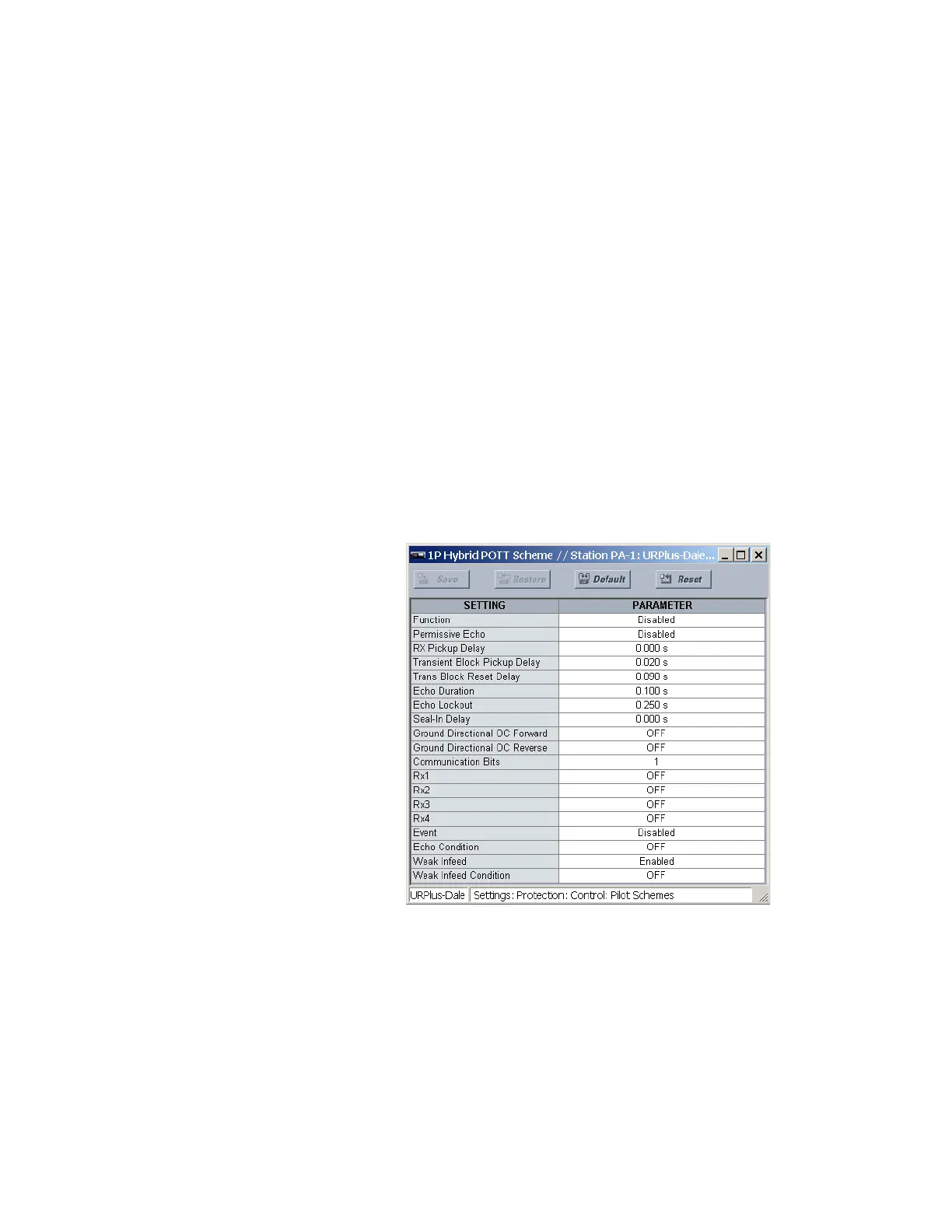 Select the Settings > Protection > Control > Pilot Schemes > Hybrid POTT Scheme menu