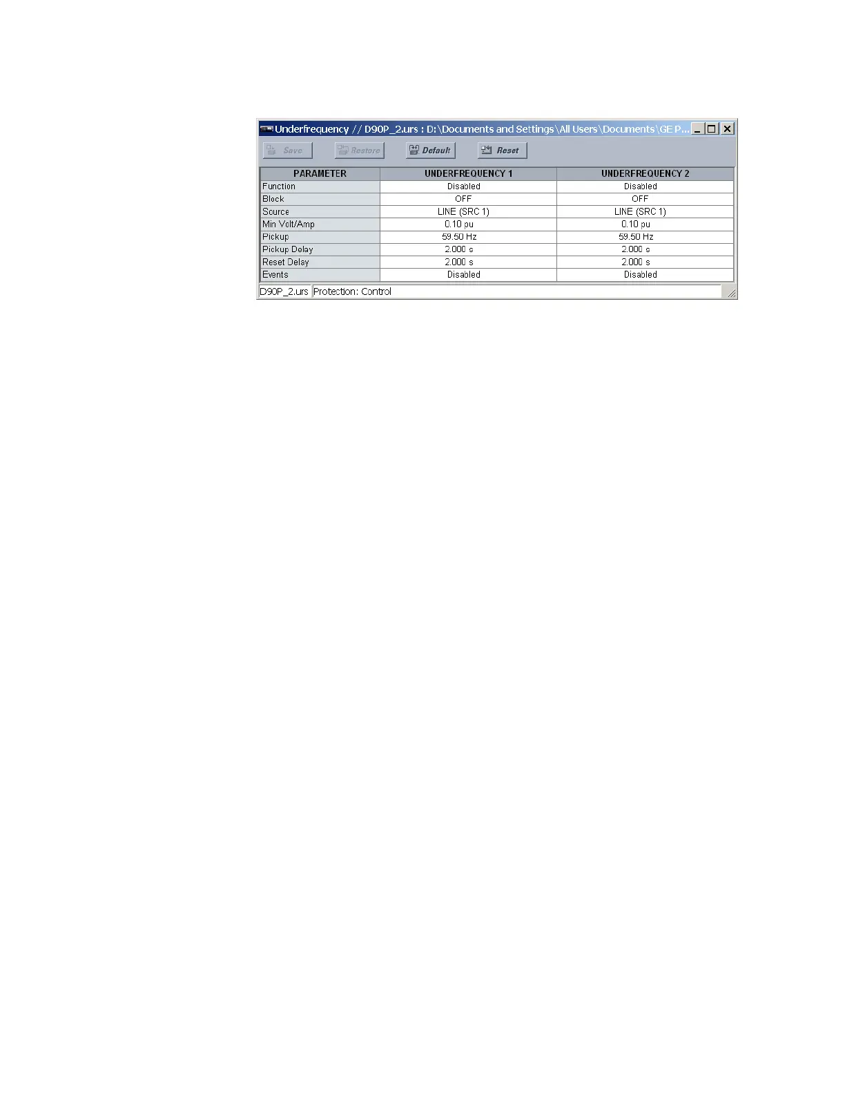 This setting enables and disables the underfrequency function.