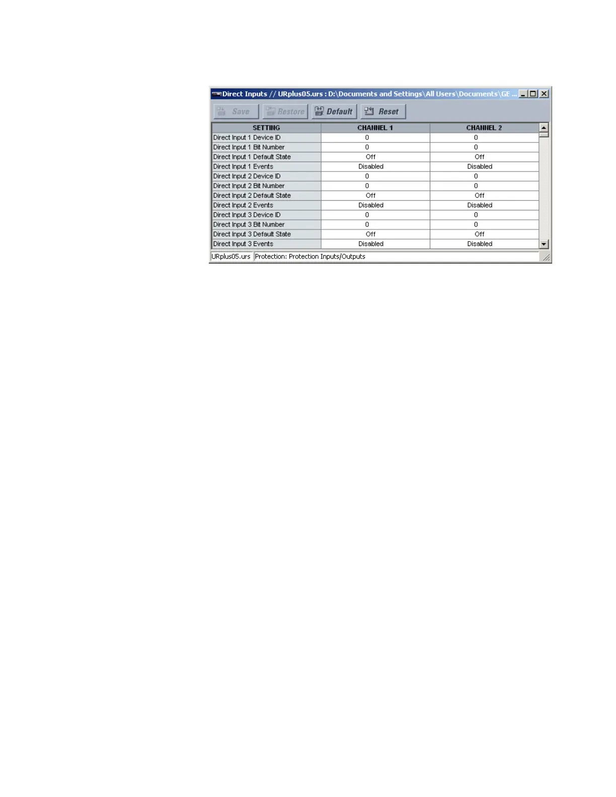 Figure 337: Direct inputs configuration settings
