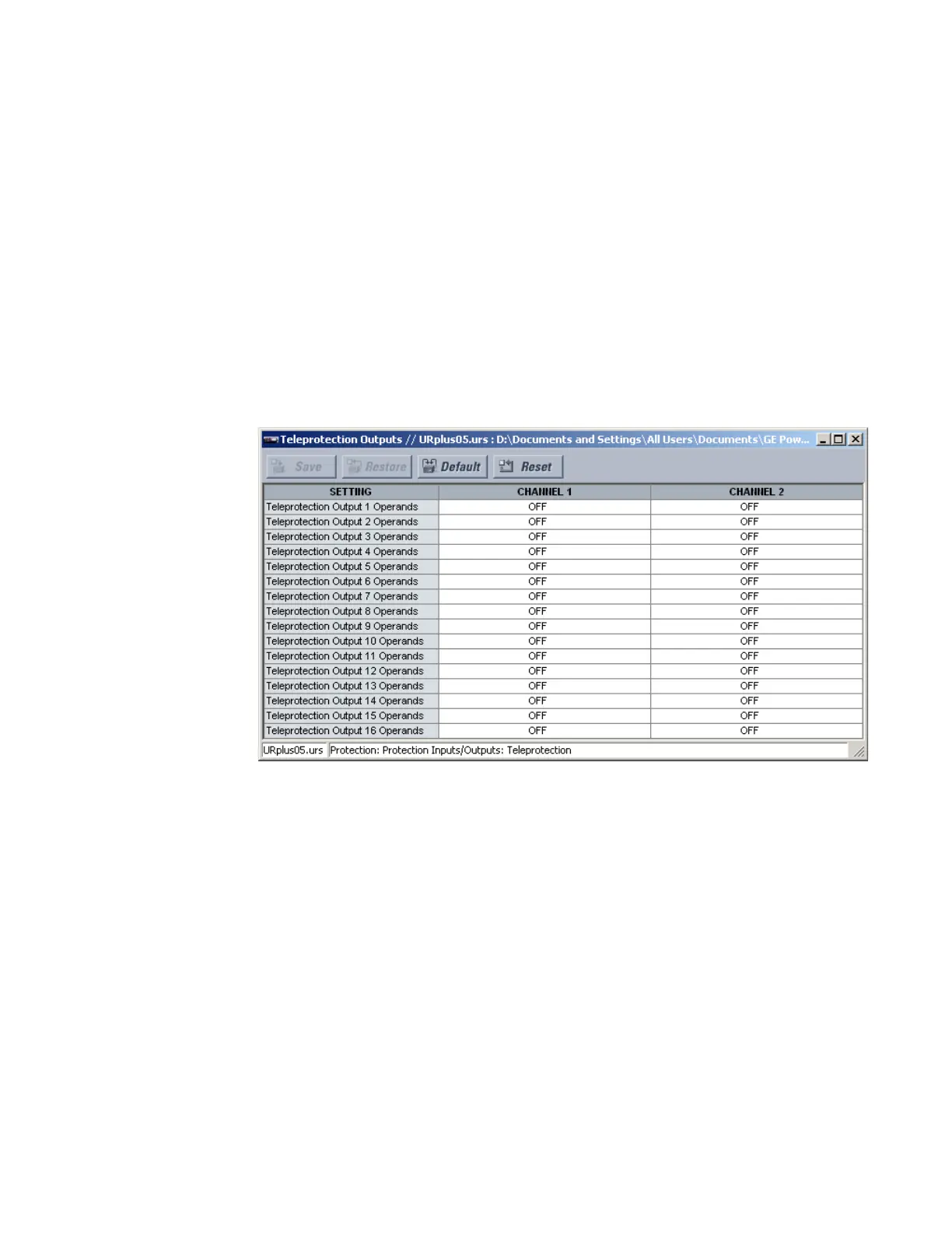 Teleprotection Outputs menu to open the teleprotection outputs configuration window.