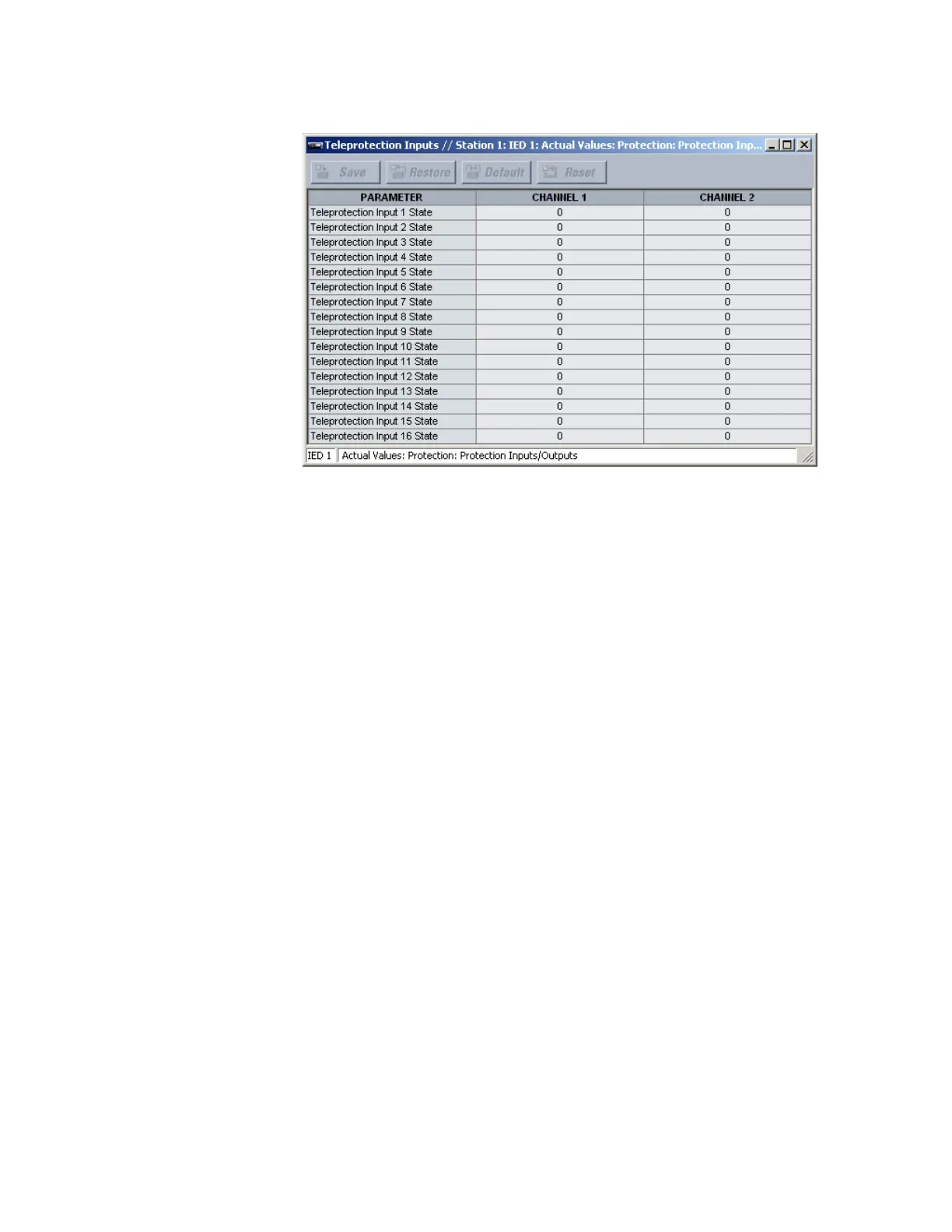The following actual value is available for all 16 teleprotection inputs on channels 1 and 2.