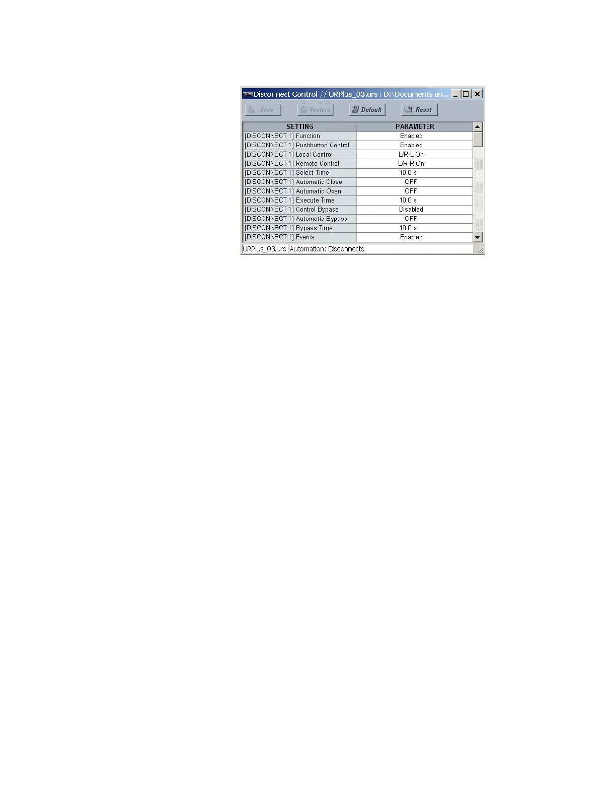 The following settings are available for each disconnect.