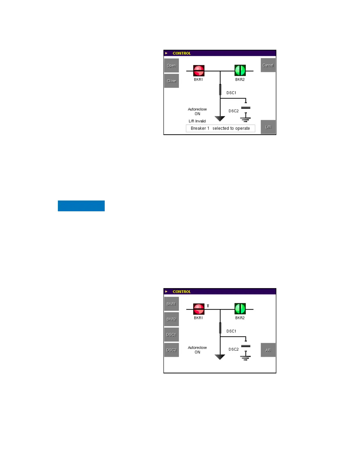 CLOSE keys initiates an open or close control action for the selected device.