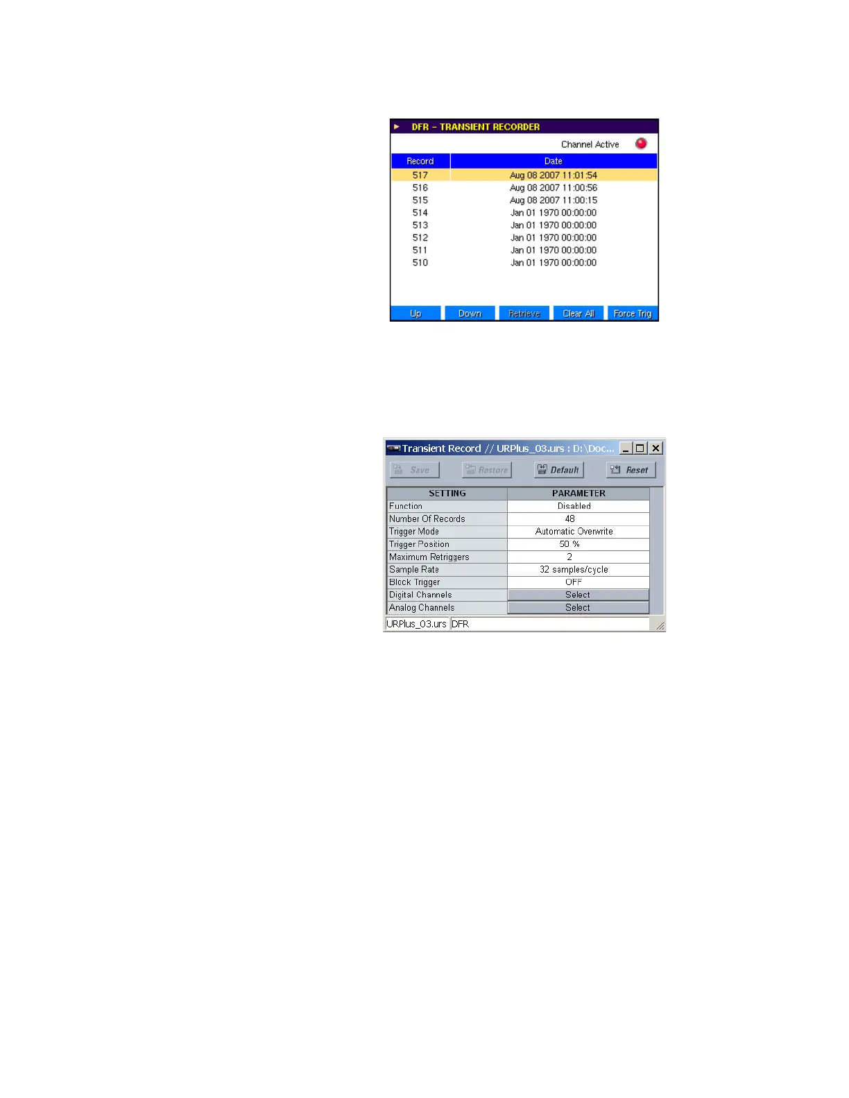 Select the Settings > DFR > Transient Record menu to open the transient recorder