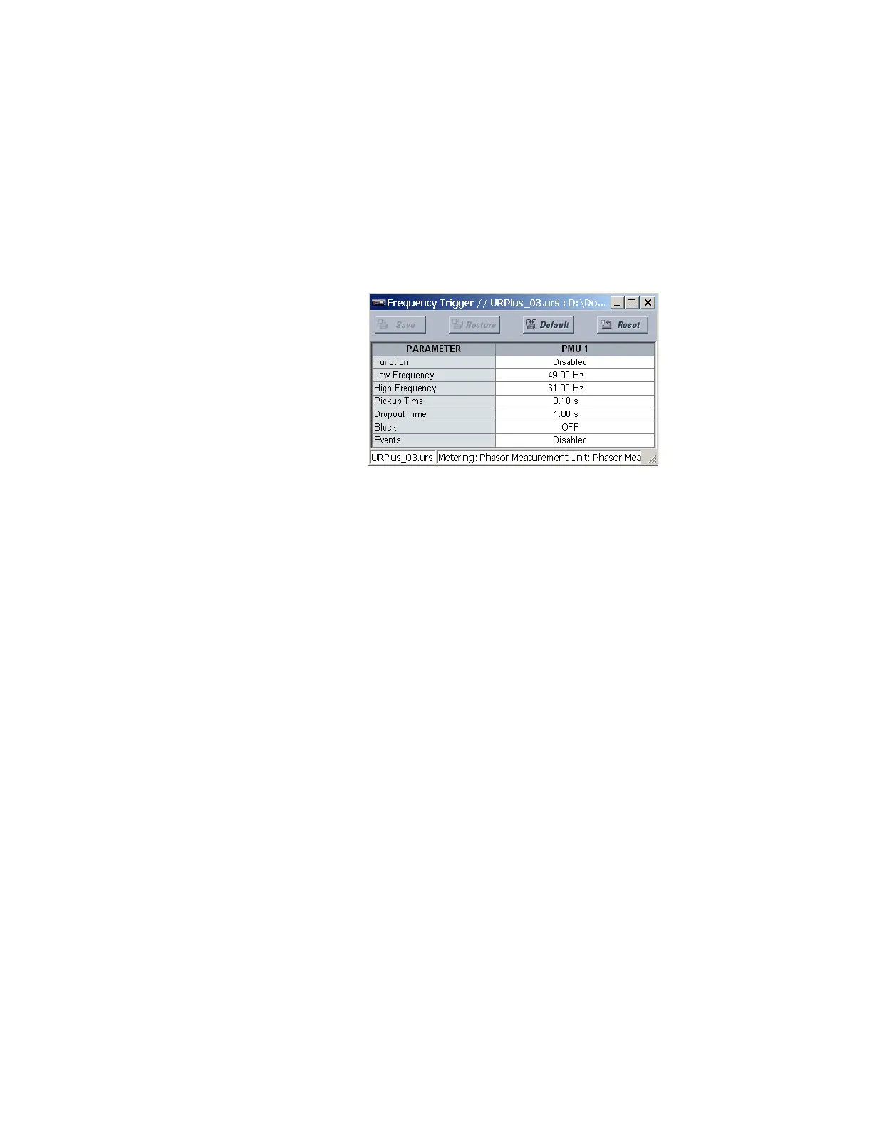 Select the Settings > Metering > Phasor Measurement Unit > Triggering > Frequency