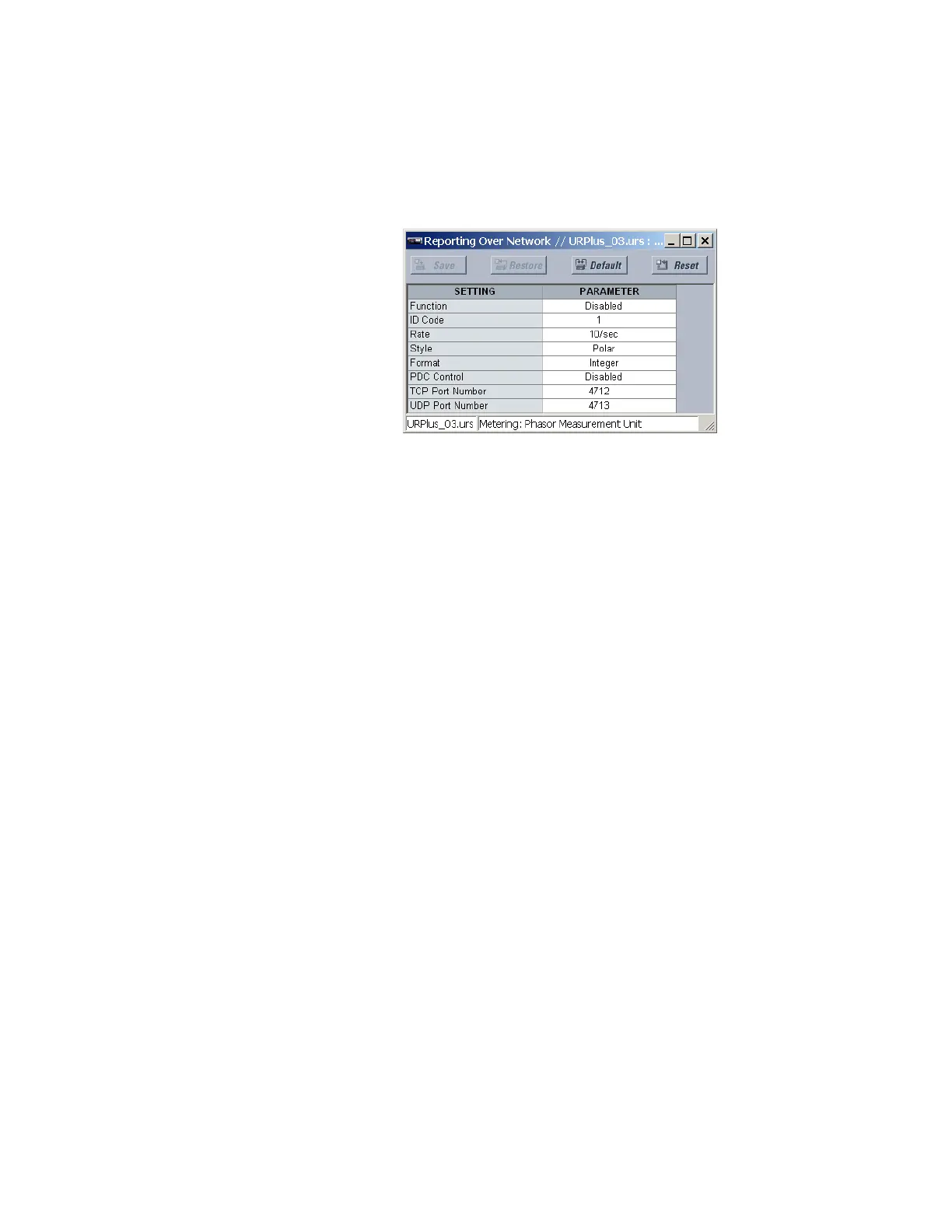 the Settings > Metering > Phasor Measurement Unit > Reporting Over Network menu.