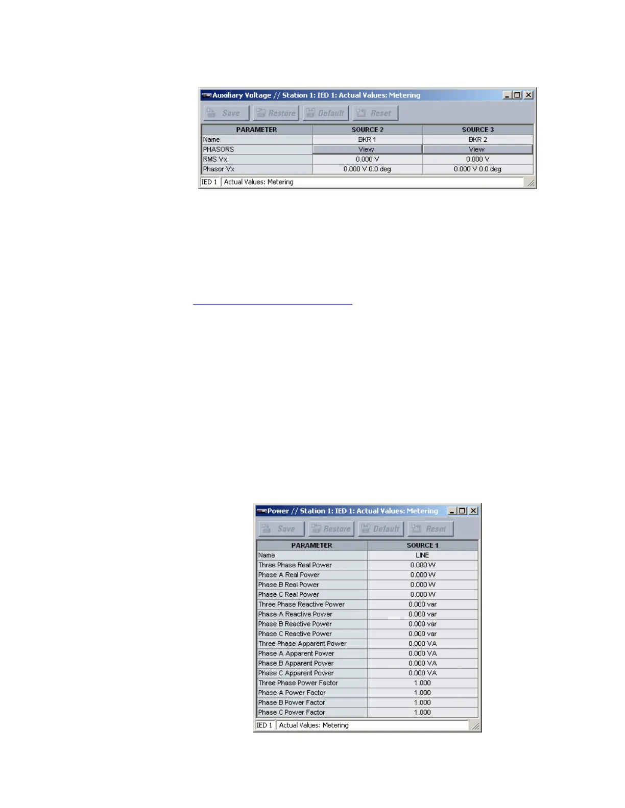 Select the Actual Values > Metering > Power menu to open the metered power window.