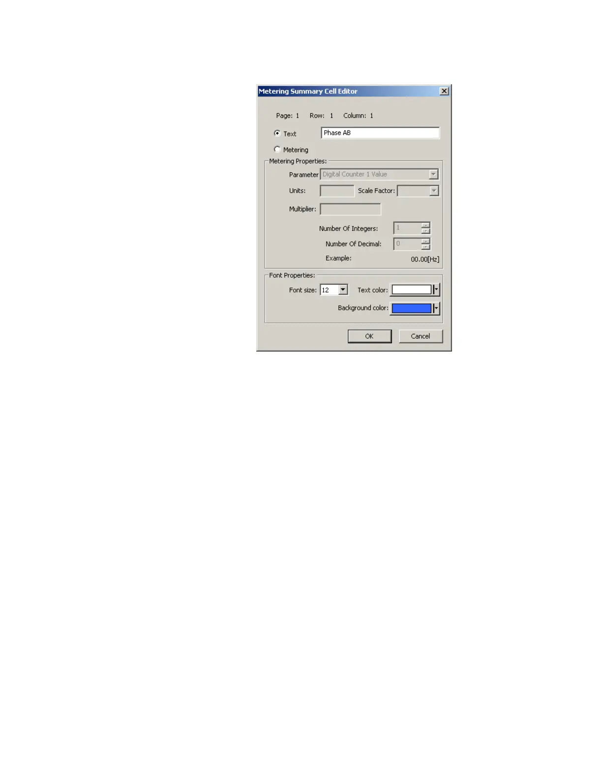 This setting defines the selected metering cell as a text box. These are used typically as