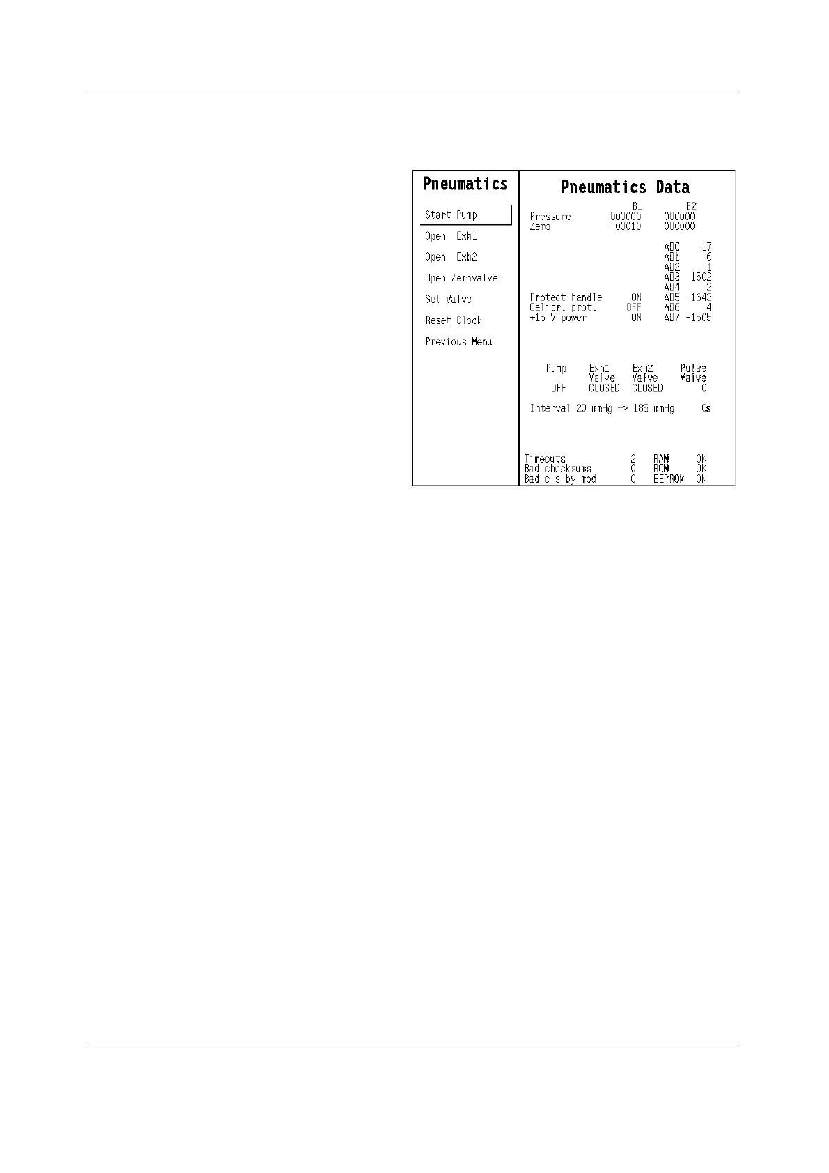For information on general items Pressure, Zero, Protect handle, Calibr. prot., +15 V power, AD0 to AD7 as