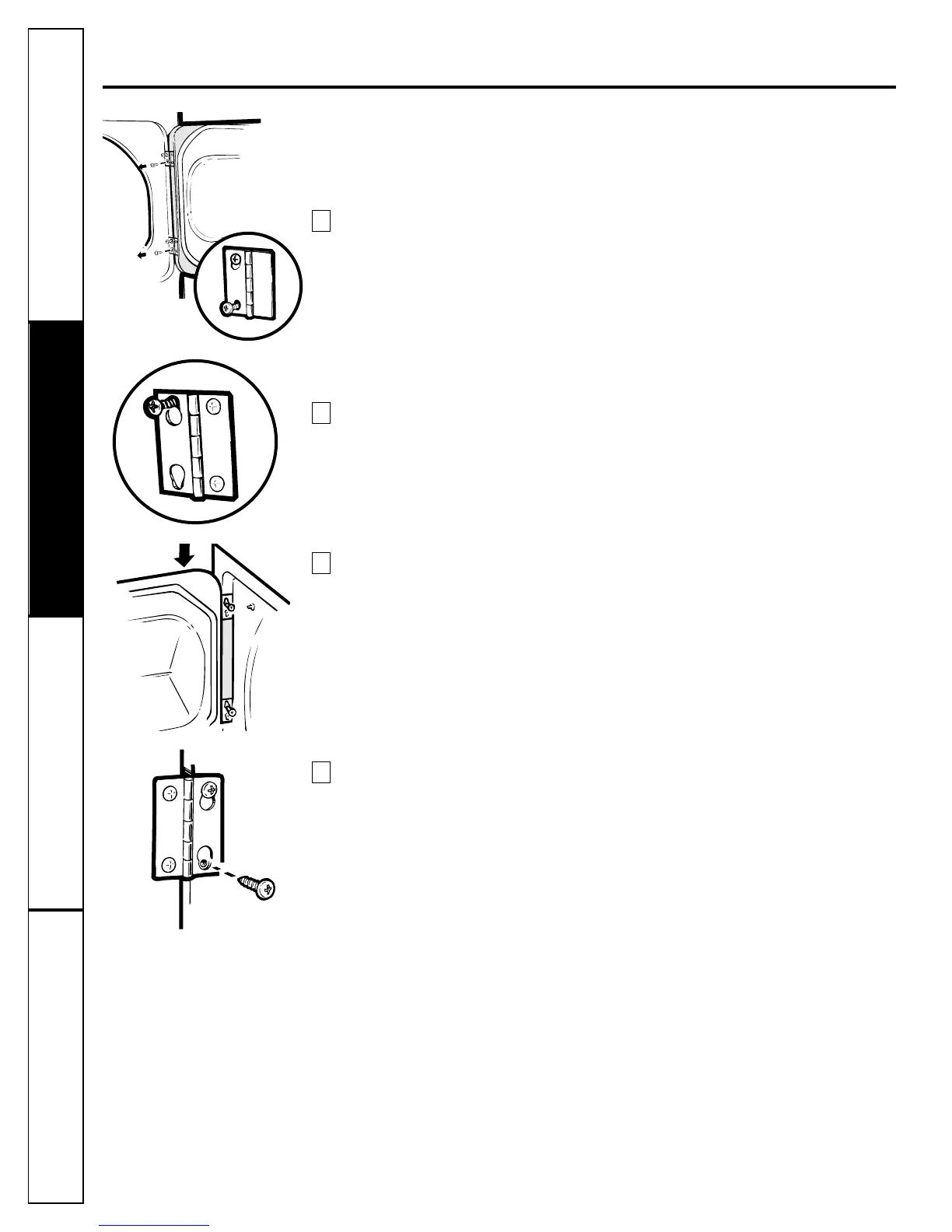 was removed. With these screws secure each hinge at the bottom. Tighten the