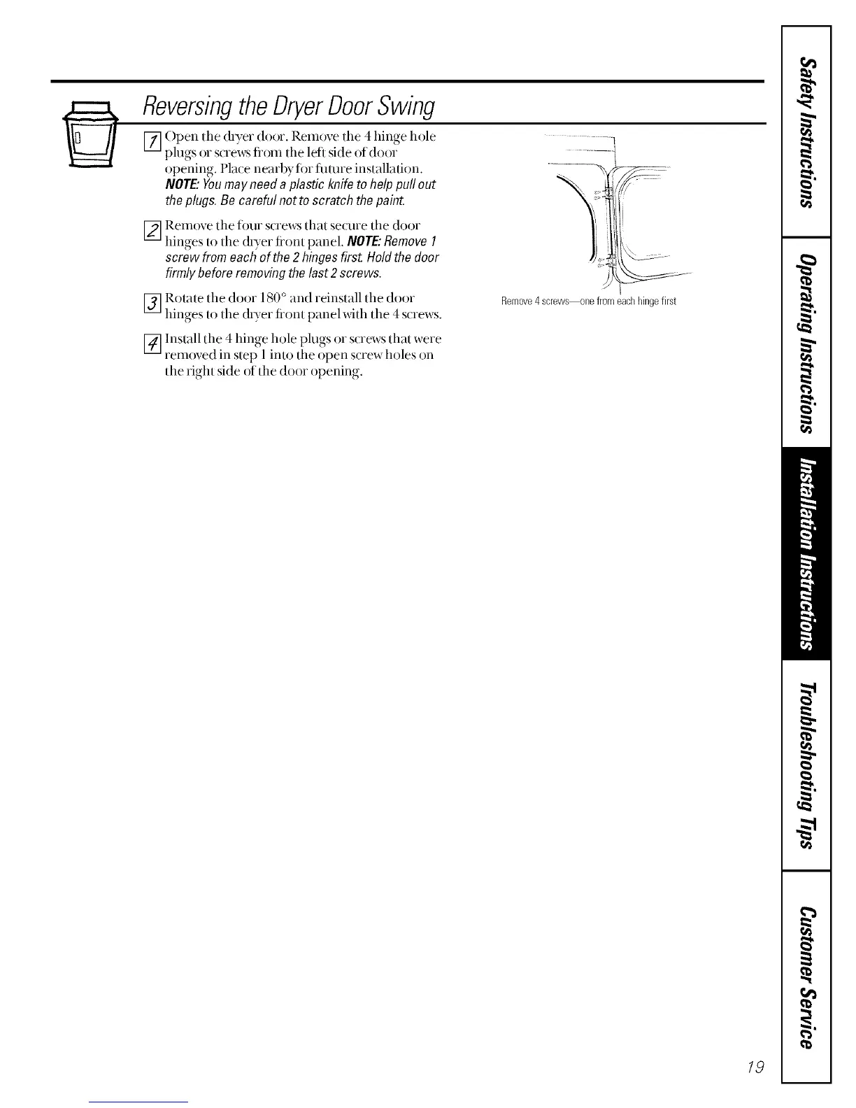 [_ Open the (h),er door. Remove the 4 hinge hole