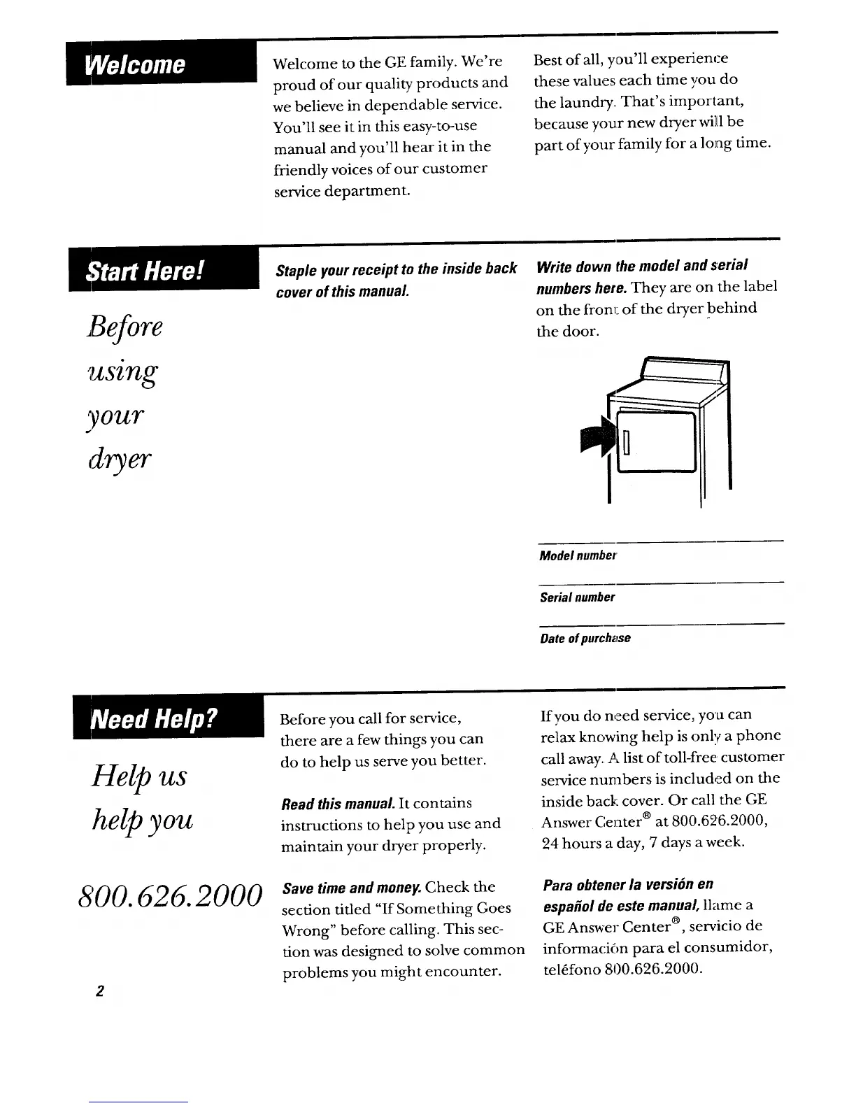 inside back cover. Or call the GE